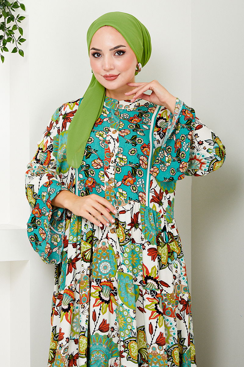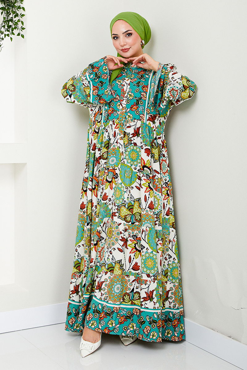Desenli Viskon Elbise MDP7113-M Yeşil