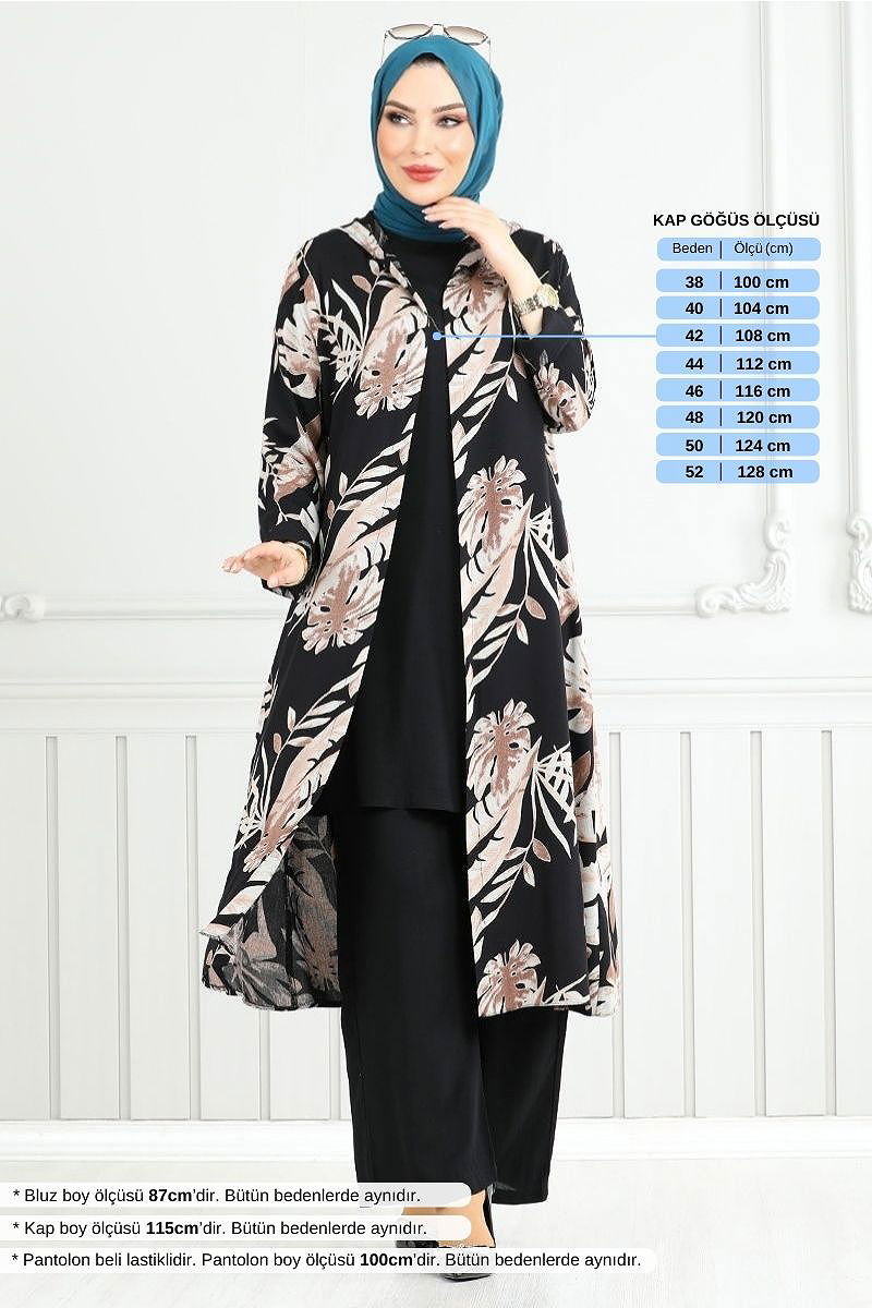 Kombine Dahil Ürünler : Kap, bluz ve pantolon.