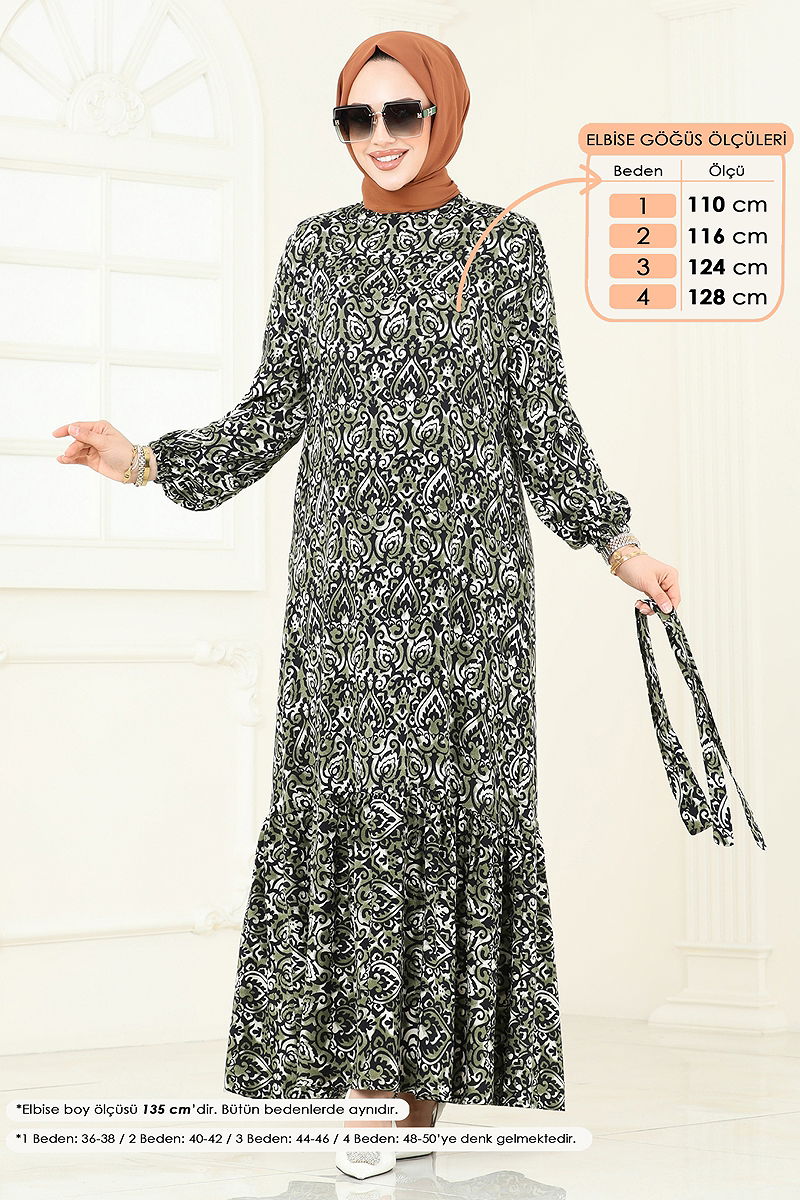 Şık ve modern Desenli Viskon Tesettür Elbise, dört mevsim rahatlıkla kullanılabilir. Viskon kumaşın nefes alabilen yapısı sayesinde gün boyu konfor sağlar. Elde yıkama önerilir. Yarım Hakim yaka ve sırttan fermuarlı tasarımı ile pratik bir kullanım sunar. Astarsız yapısı ile hafif ve rahattır. Ürüne dahil olan kemer isteğe bağlı kullanılabilir ve manşetleri lastiklidir. Bu elbise, hem günlük kullanım hem de özel günleriniz için idealdir.