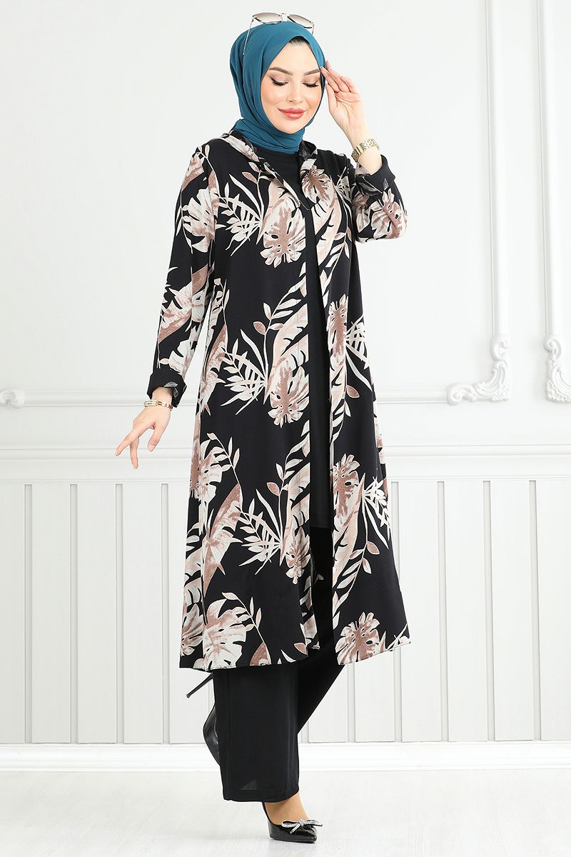 Desenli Viskon Üçlü Takım 4030BG354 Siyah