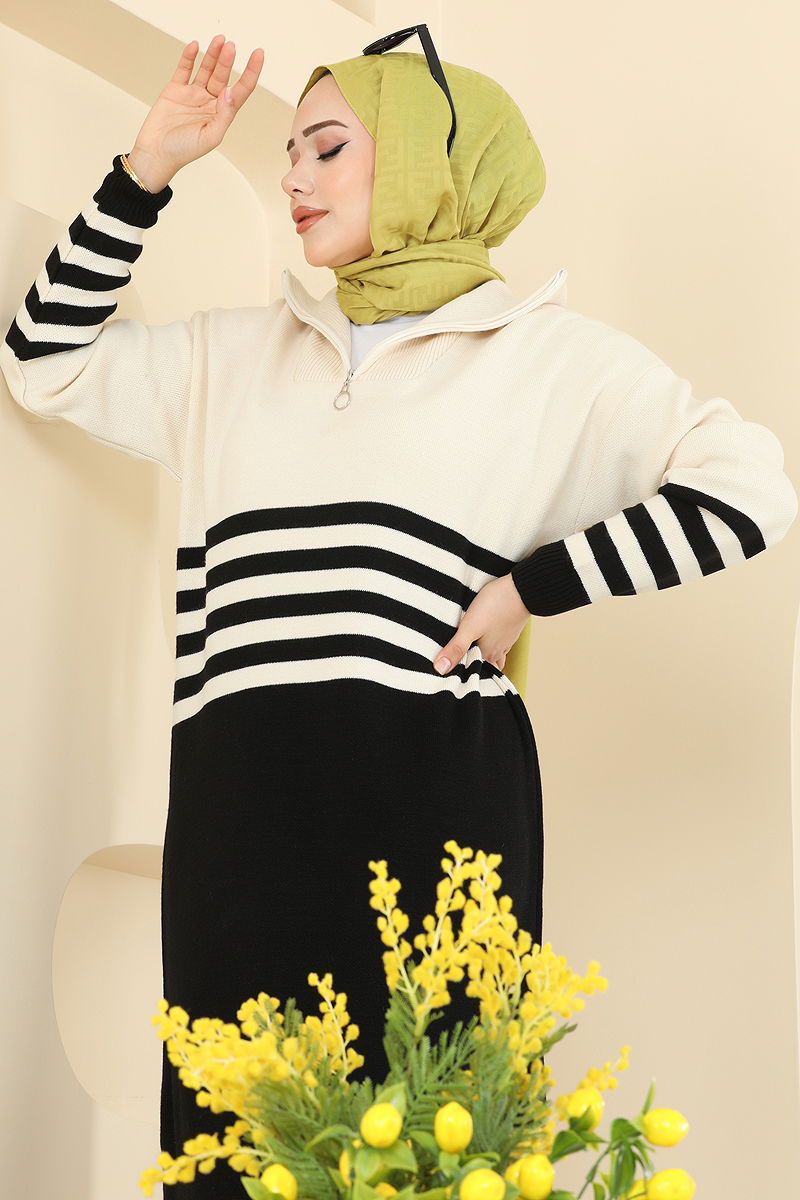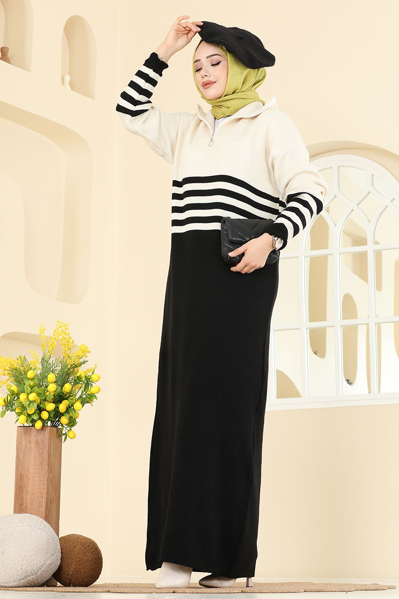 Dik Yaka Triko Elbise 9051OZN1046 Siyah