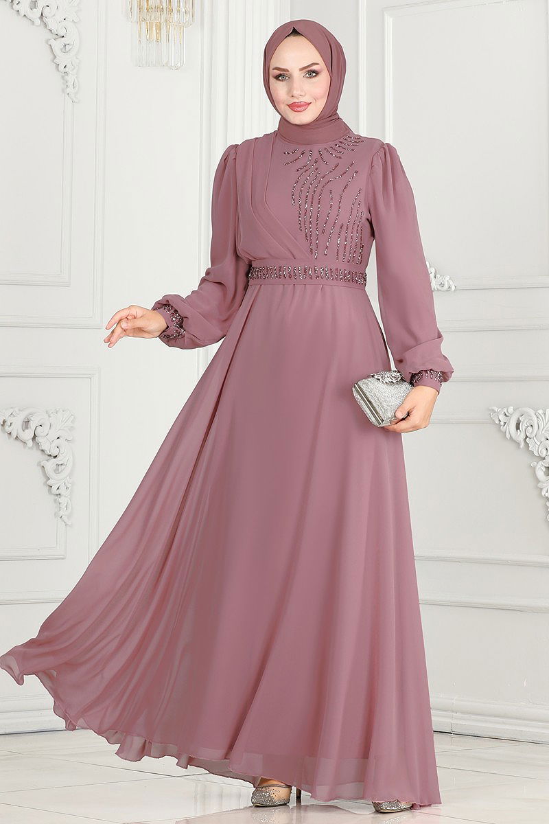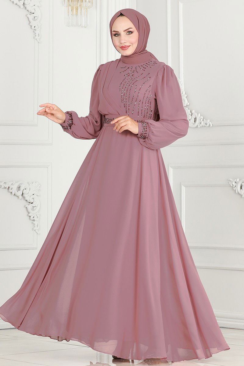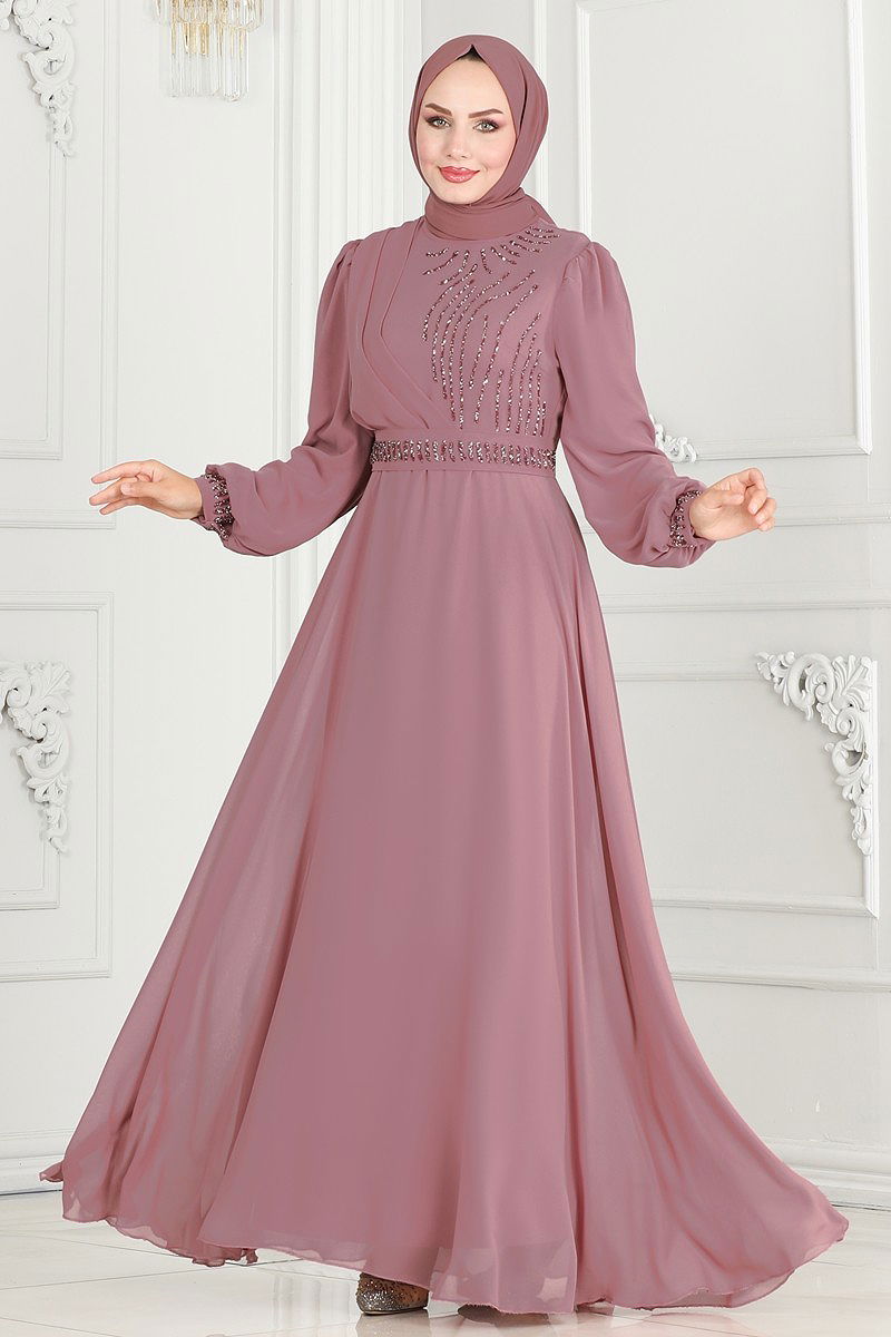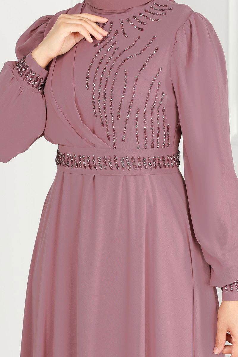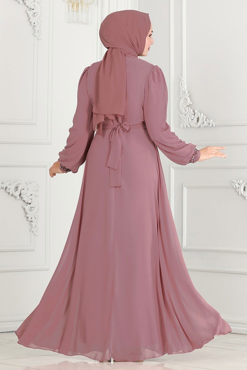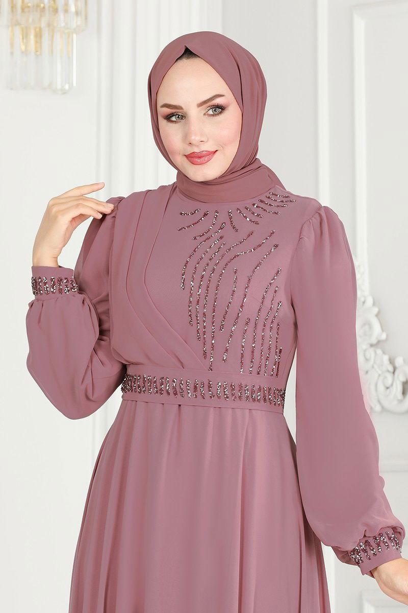 Drape Taş Detaylı Abiye 6583YG95 Gül Kurusu
