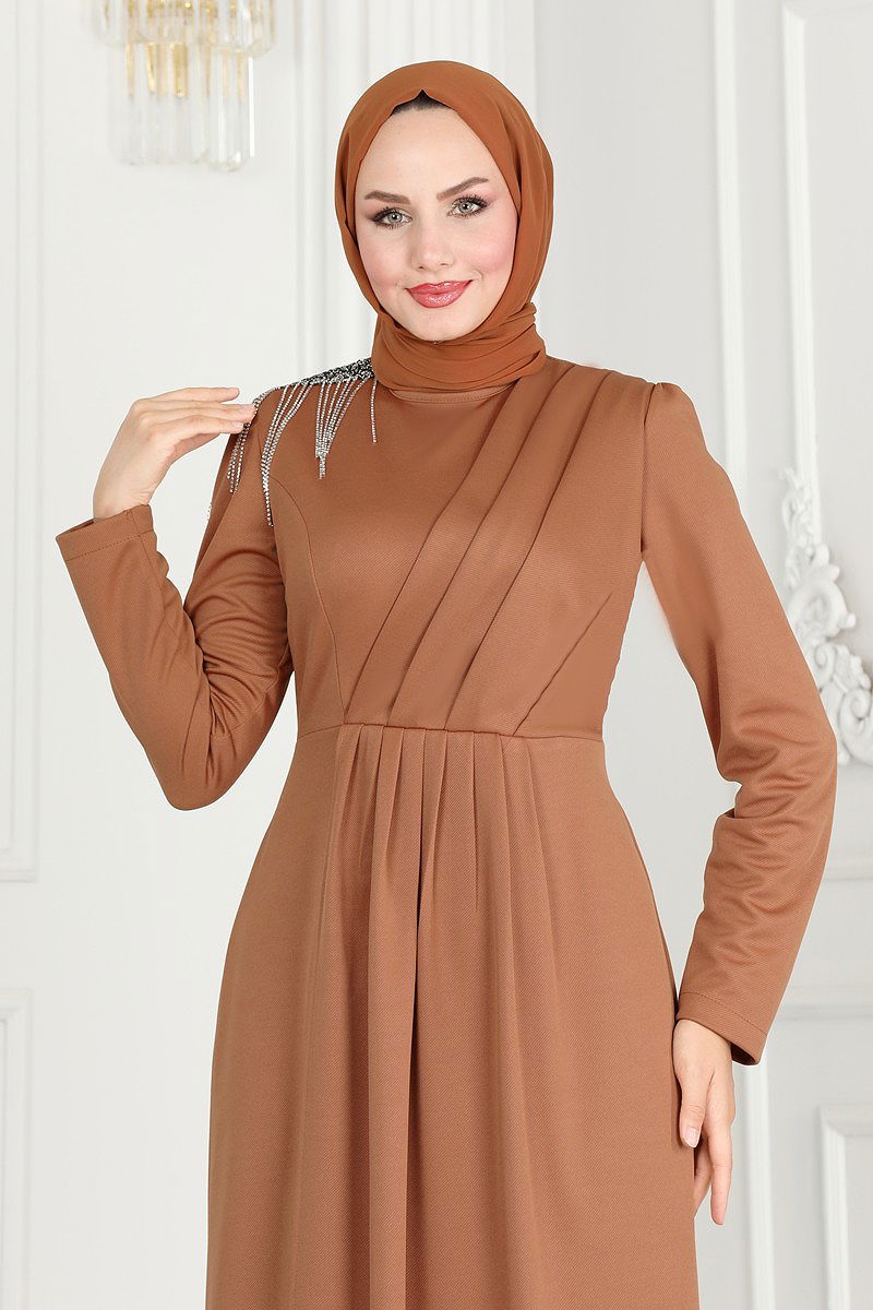 Ürün Özelliği : Yeni sezon tesettür moda ürünüdür. Ürün Bisiklet yakadır. Astarsızdır. Ürün Arkadan fermuarlıdır. Taşlar yapıştırmadır. Konsept fotoğraf çekimlerinden dolayı üründe ton farklılığı olabilir.