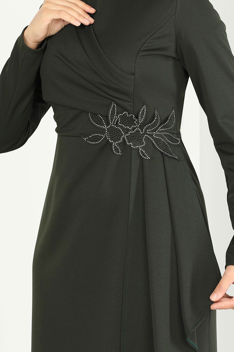 Drapeli Kalem Abiye Elbise ASM2580 Haki