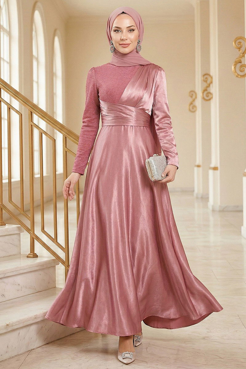 Drapeli Saten Abiye Pudra