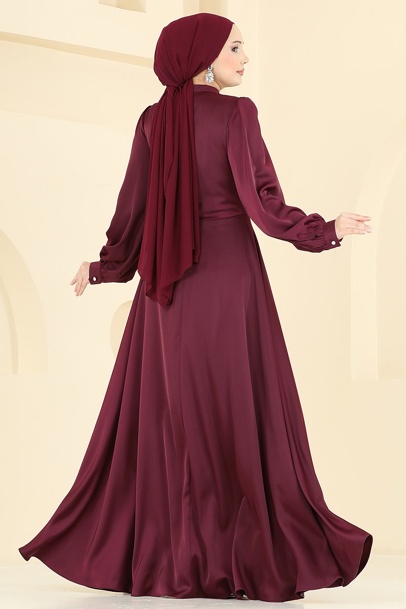 Drapeli Taş Detaylı Abiye 6261BSK463 Bordo