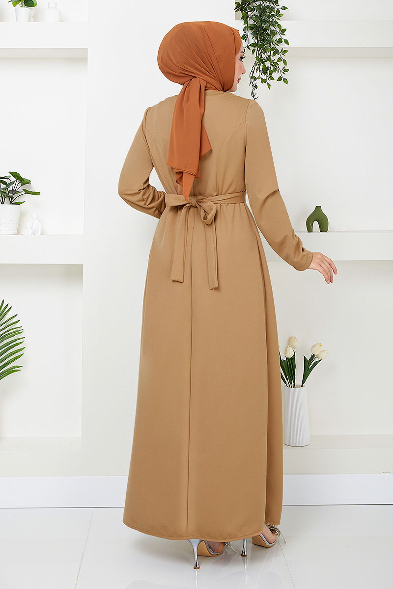 Draped Hijab Evening Dress 12241PL940-M Latte