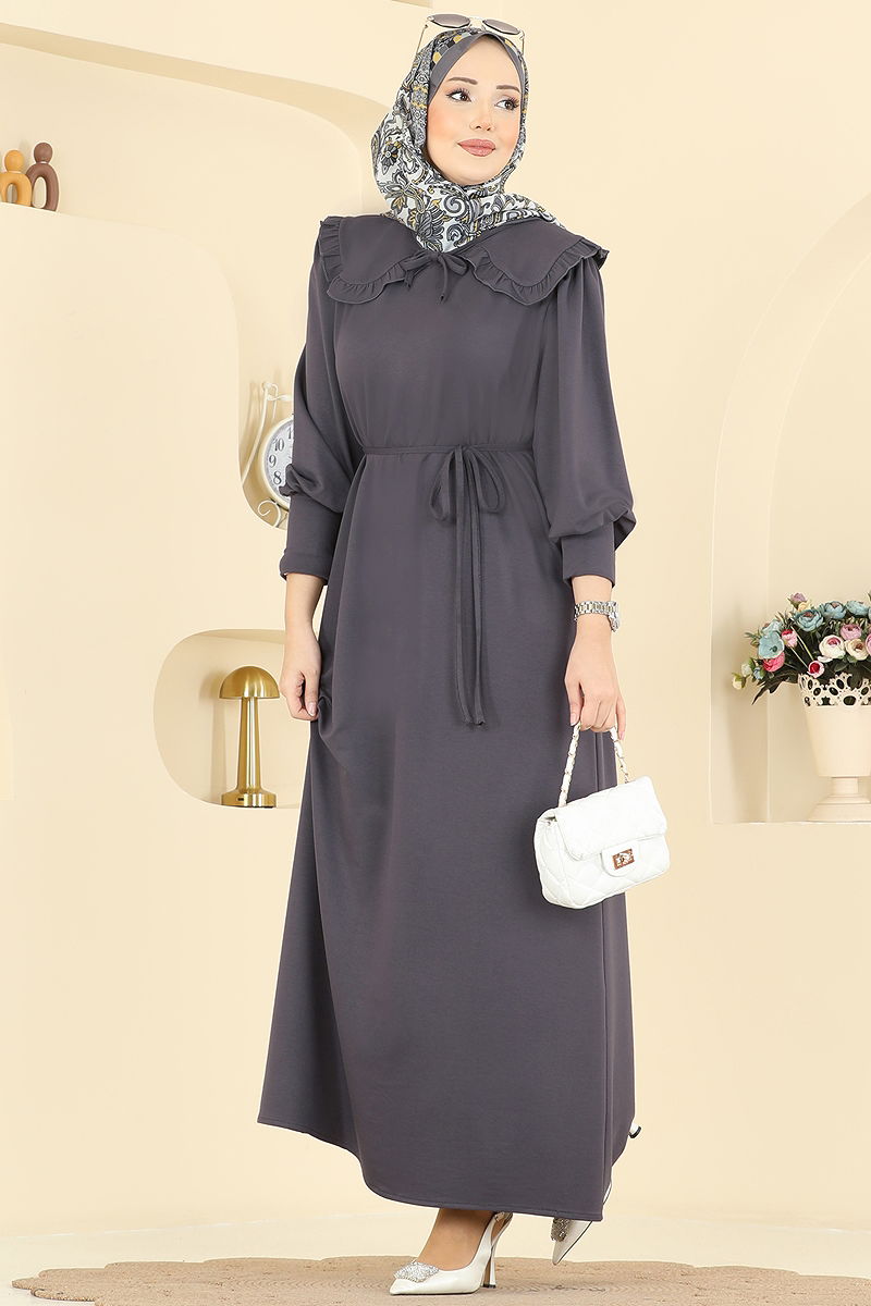 Embrace elegance with the Baby Collar Crystal Dress, a unique interpretation of modest fashion that maintains your style throughout all seasons. Washable at 30 degrees with a delicate cycle, this dress marries the sophistication of crystal fabric with the charm of a baby collar. Designed without lining for comfort and featuring an adjustable belt, the dress is tailored to fit all sizes. The belt ends are securely stitched, offering flexibility in the center for optimal fit. Perfect for both everyday wear and special occasions, this dress is set to become an essential staple in your wardrobe.