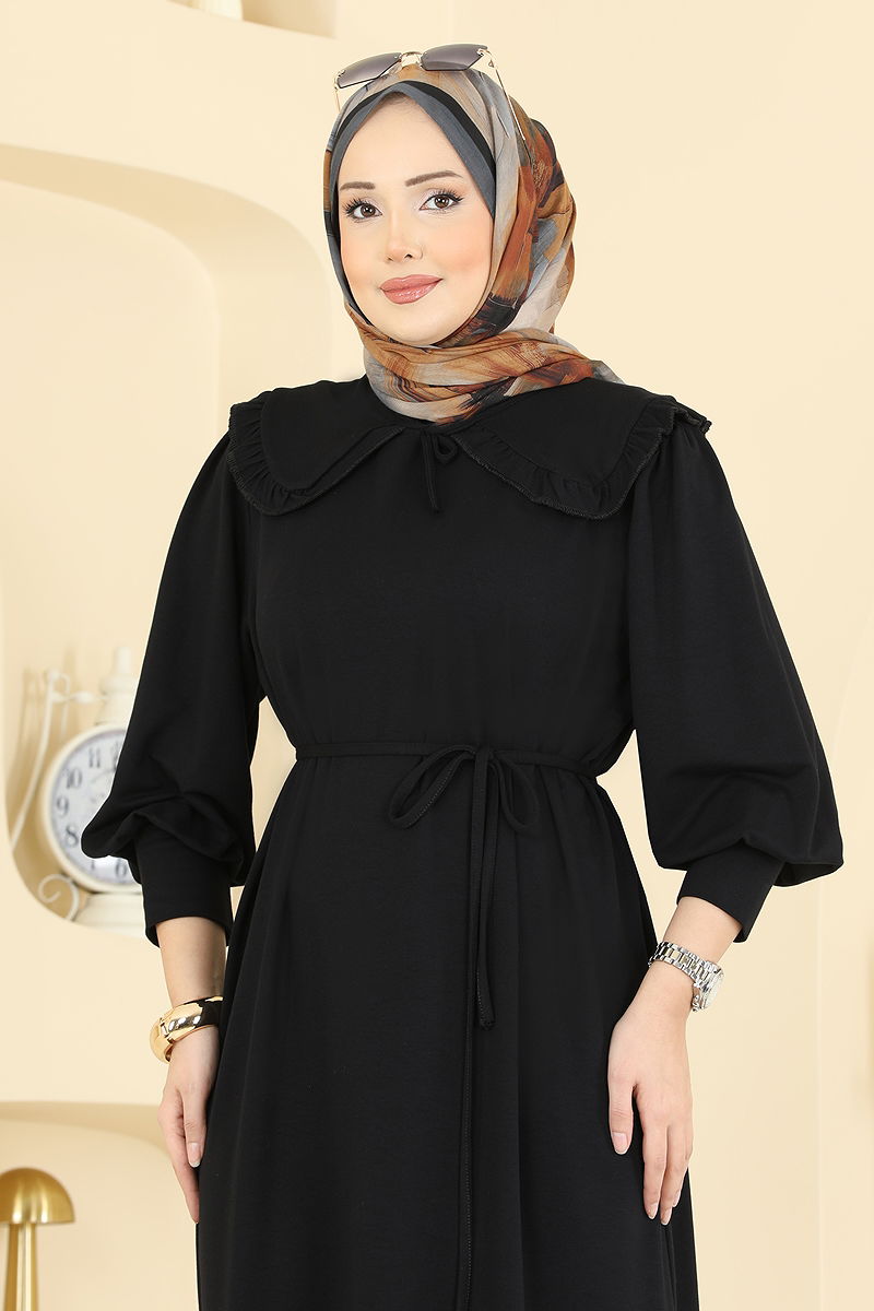 Embrace elegance with the Baby Collar Crystal Dress, a unique interpretation of modest fashion that maintains your style throughout all seasons. Washable at 30 degrees with a delicate cycle, this dress marries the sophistication of crystal fabric with the charm of a baby collar. Designed without lining for comfort and featuring an adjustable belt, the dress is tailored to fit all sizes. The belt ends are securely stitched, offering flexibility in the center for optimal fit. Perfect for both everyday wear and special occasions, this dress is set to become an essential staple in your wardrobe.