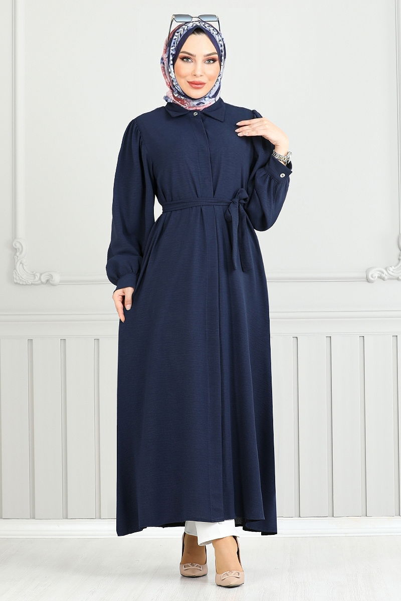Product Feature : It is a new season hijab fashion product. The product has a Shirt collar. The product has From the front buttons. Unlined. Belt included, optional not available. Cuff buttons are active. There may be a tonal difference in the product due to concept photo shoots.