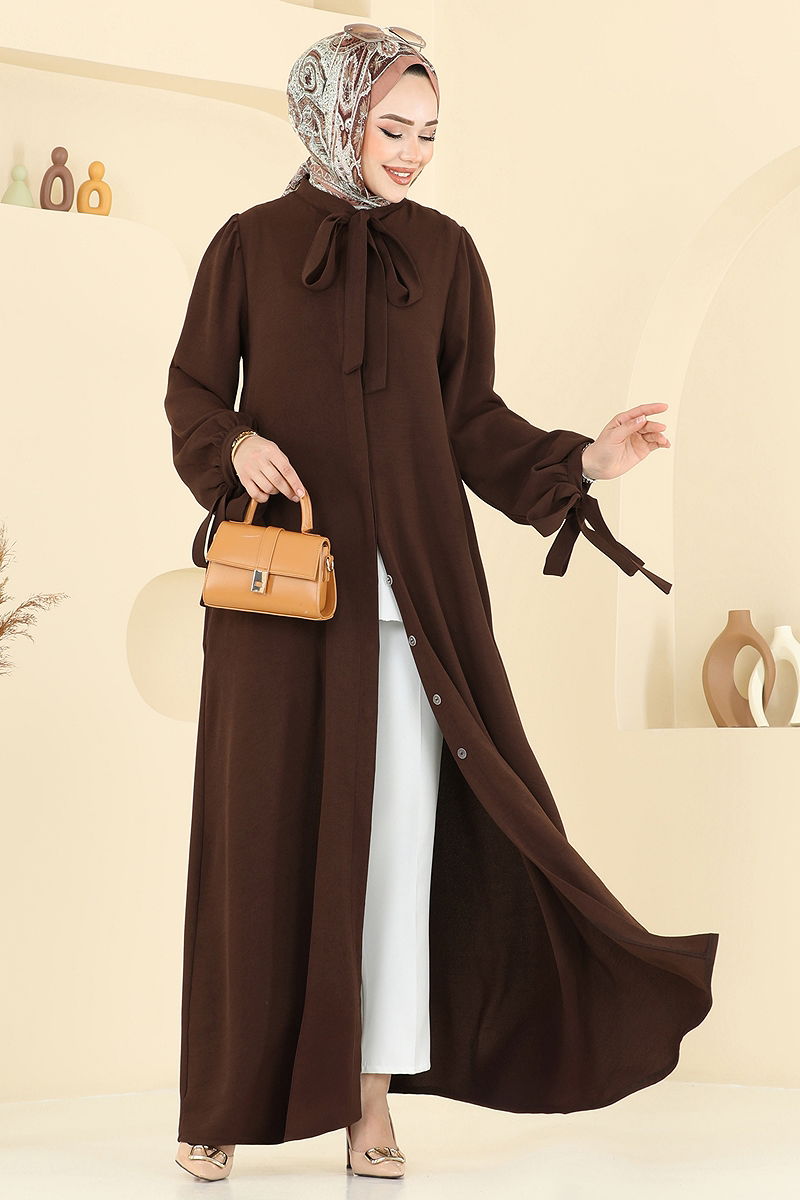The Laced Cuff Dress Abaya is a stylish and modern hijab dress that can be comfortably worn in all seasons. Its carefully selected crepe fabric enhances wearing comfort, while its machine washable feature at 30 degrees Celsius adds practicality. Its scarf collar and hidden buttons enhance its elegance, while its unlined structure provides a light and comfortable wearing experience. The laced cuffs add a modern touch. This dress, which can be confidently chosen in any setting, elegantly represents hijab fashion.