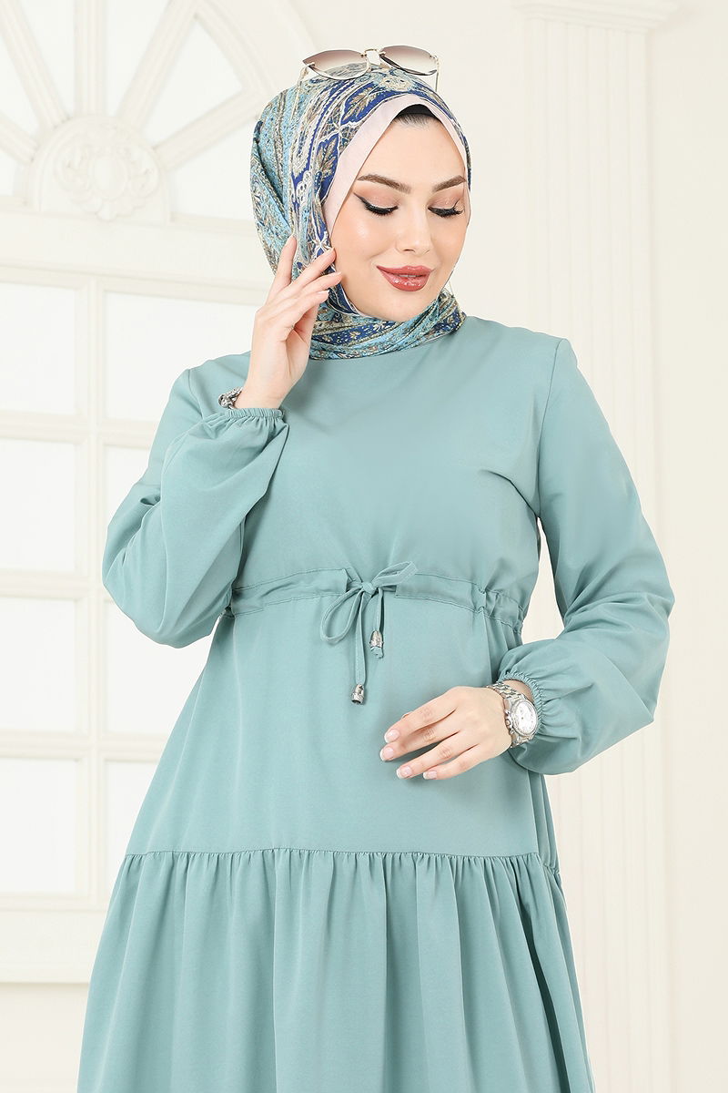 يوجد زر يمكن استخدامه من الخلف. يتميز بخصر ذو أربطة. المنتج لديه ياقة دائرية. غير مبطنة. السوار مطاطي. قد يكون هناك اختلاف في الدرجة اللونية في المنتج بسبب التقاط الصور الفوتوغرافية.