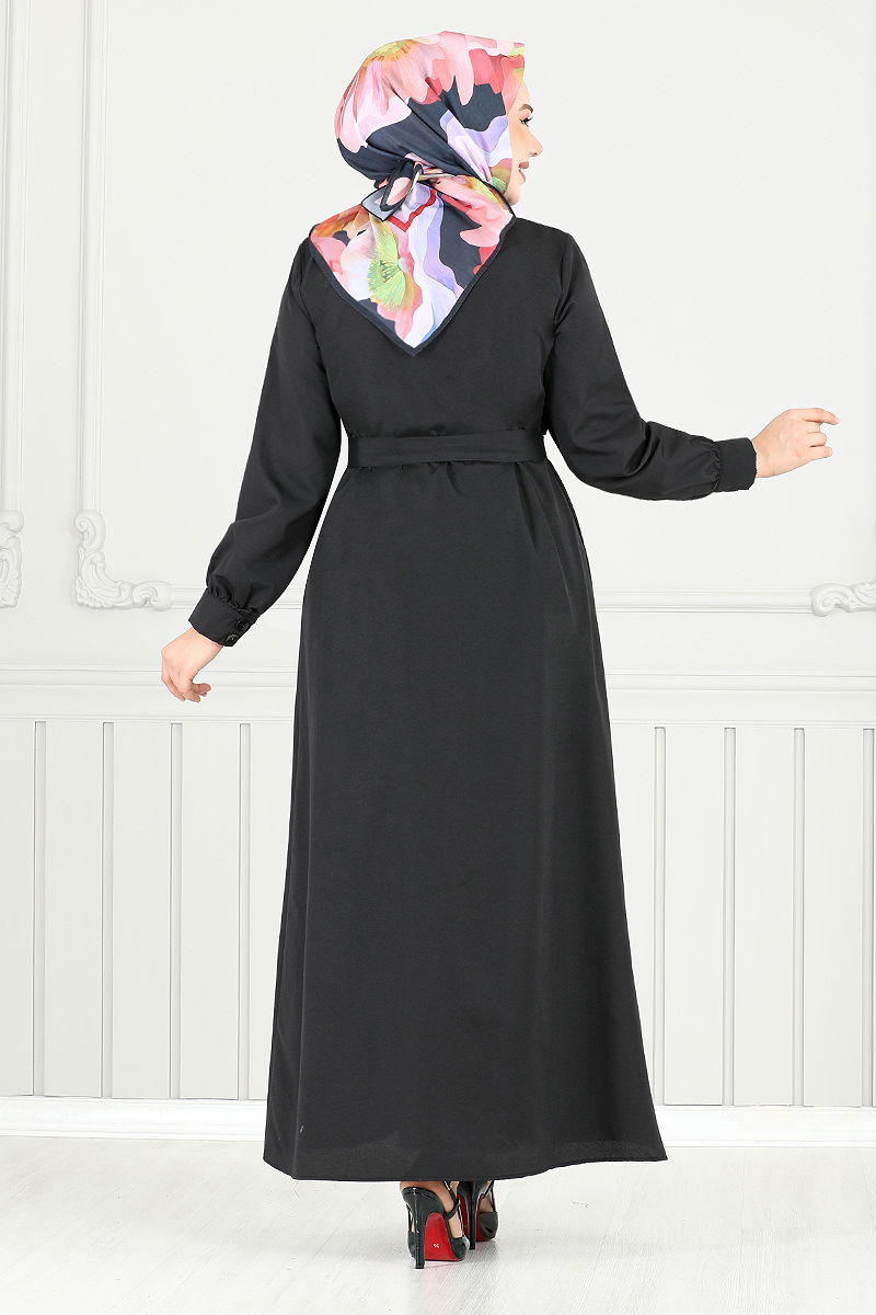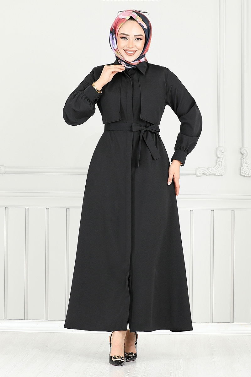 This elegant Belted Modest Dress is a stylish choice that can be comfortably worn in any season and fits any occasion. Made from high-quality terrycotton fabric, the dress is suitable for delicate wash and can be washed at 30 degrees. It features a shirt collar design and hidden button details for a modern and sophisticated look. The unlined structure makes it light and comfortable. The included belt, with stitched ends and a stitch-free middle part, is removable as desired. Active cuff buttons add functionality.