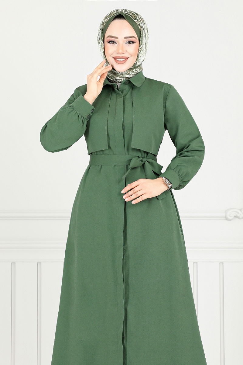 Product Feature : It is a new season hijab fashion product. The product has a Shirt collar. The product has Secret buttons. Unlined. Belt included, optional not available. Cuff buttons are active. There may be a tonal difference in the product due to concept photo shoots.
