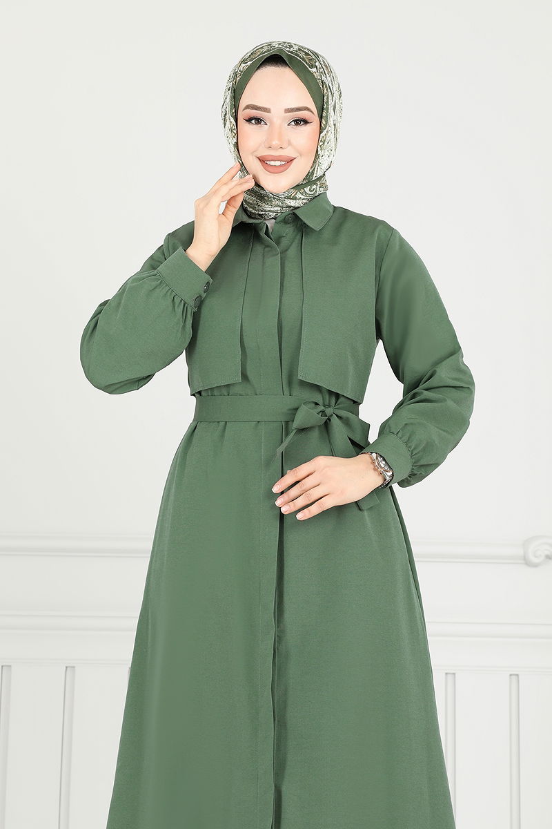 المنتج لديه ياقة القميص. المنتج به أزرار جيزلي. غير مبطنة. الحزام متضمن، ،يمكن استخدامها حسب الرغبة أزرار الكفة نشطة. قد يكون هناك اختلاف في الدرجة اللونية في المنتج بسبب التقاط الصور الفوتوغرافية.