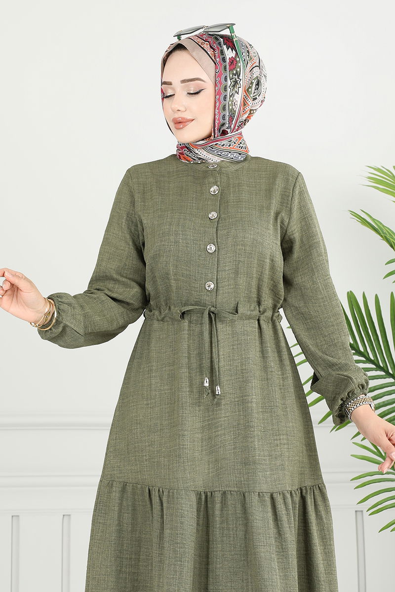 المنتج لديه ياقة نصف بيضوية. المنتج به أزرار من الأمام. غير مبطنة. يتم خياطة الحزام في المنتج وربطه. السوار مطاطي. قد يكون هناك اختلاف في الدرجة اللونية في المنتج بسبب التقاط الصور الفوتوغرافية.