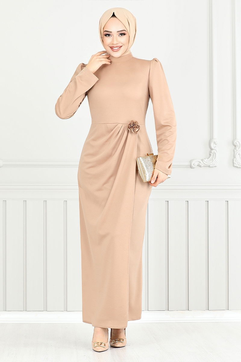 Introducing the Rose Detail Elegant Dress, the perfect choice for your special occasions! Made from knitted crepe fabric, this modest dress is suitable for all seasons and can be washed gently at 30 degrees. Featuring a back zipper and a mandarin collar, this dress also boasts an attached brooch for an extra touch of elegance. Its unlined design ensures light and comfortable wear. A must-have in the wardrobe of any stylish woman, this dress will make you the center of attention wherever you go!