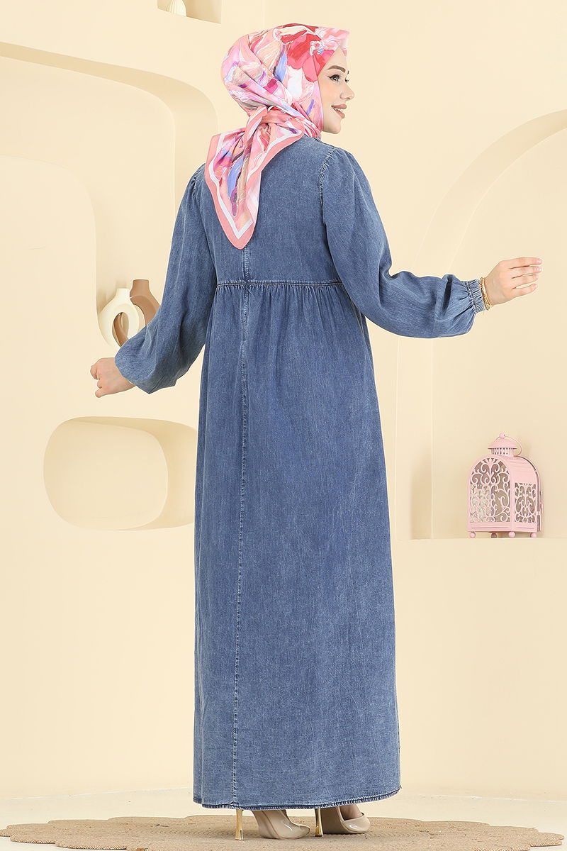 Chic and functional Pocket Detailed Denim Dress! This all-season hijab-friendly dress offers a modern and comfortable experience with its crew neck and back zipper. Its lining-free design makes it light and comfortable. It adds functional elegance with specially designed pockets and elastic cuffs. It can be washed at 30 degrees on a gentle cycle.