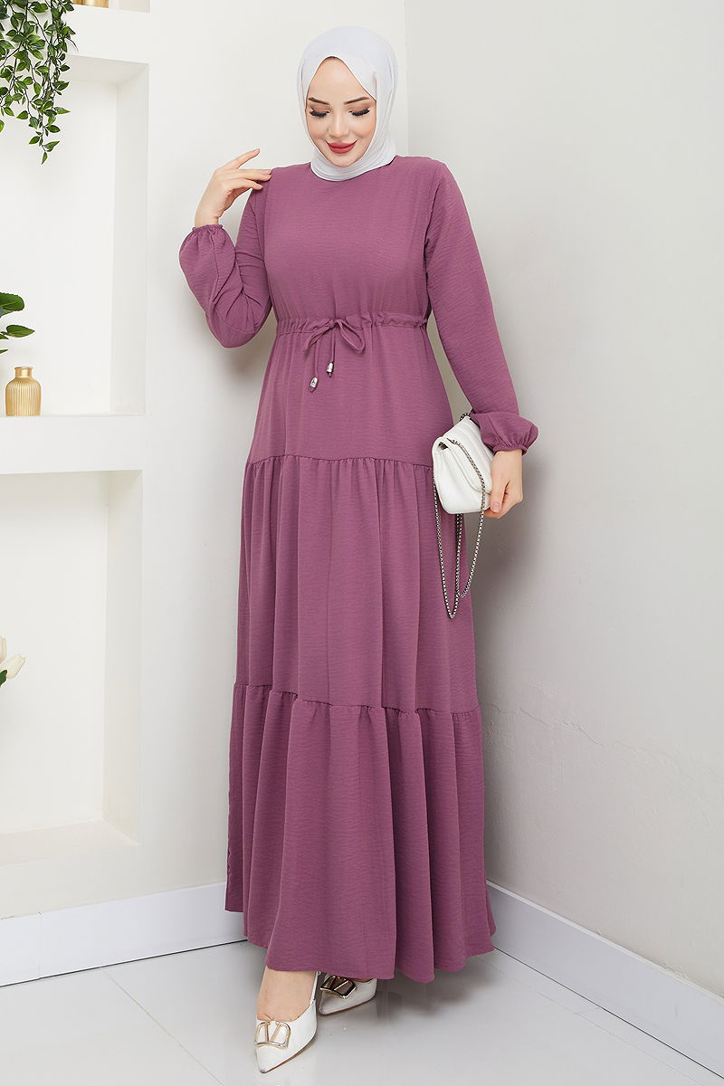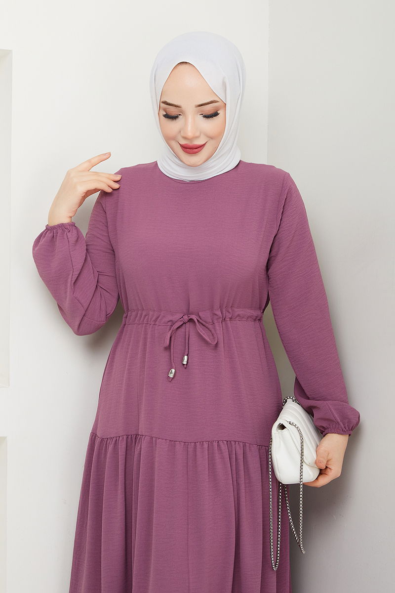 يوجد زر يمكن استخدامه من الخلف. يتميز بخصر ذو أربطة. المنتج لديه ياقة دائرية. غير مبطنة. الملحقات غير متضمنة. السوار مطاطي. قد يكون هناك اختلاف في الدرجة اللونية في المنتج بسبب التقاط الصور الفوتوغرافية.