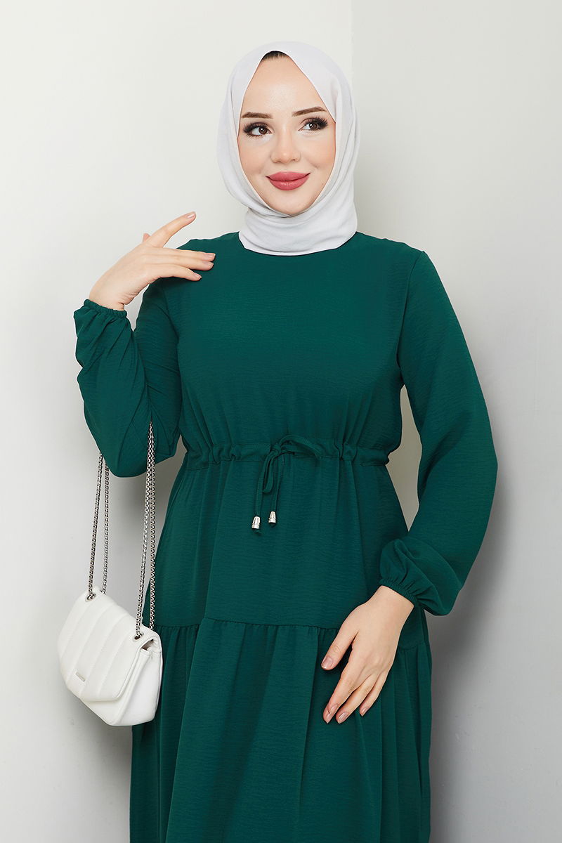 يوجد زر يمكن استخدامه من الخلف. يتميز بخصر ذو أربطة. المنتج لديه ياقة دائرية. غير مبطنة. الملحقات غير متضمنة. السوار مطاطي. قد يكون هناك اختلاف في الدرجة اللونية في المنتج بسبب التقاط الصور الفوتوغرافية.