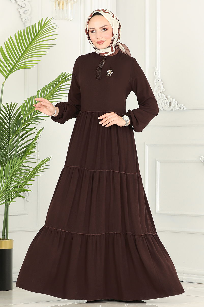 The Tie-Neck Viscose Dress is a specially designed modest wear product. Suitable for use in spring and summer, this dress is made from breathable viscose fabric. It features a bike neck and elasticated cuffs for a modern look. The dress is unlined, making it light and convenient to wear. Hand washing is recommended. Model dimensions: Height: 160 cm, Chest: 86 cm, Waist: 68 cm, Hips: 95 cm, Weight: 55 kg. Ideal for those looking for stylish and comfortable options.