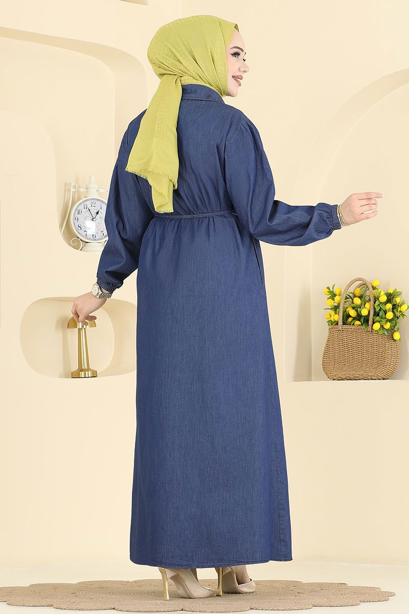 Combining elegance and comfort, the Stone Embellished Jean Dress is a modest wear model that can be comfortably used in all seasons. Its shirt collar and front-button design offer practical use, while the crystal stone details provide a dazzling look. The jean material ensures durability and longevity. For ease of ironing and washing, handle the product inside out. Its hidden pockets and an optional waist tie increase functionality. Elastic cuffs enhance your comfort. This dress is ideal for those who seek both style and comfort.