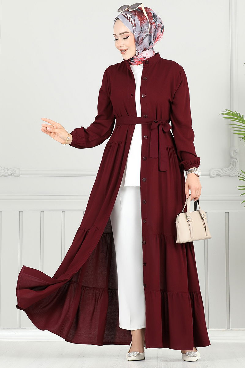 المنتج لديه ياقة بيضوية. المنتج به أزرار من الأمام. غير مبطنة. المنتج يحتوي على حزام خصر مُخاط. الحزام متضمن، ،يمكن استخدامها حسب الرغبة السوار مطاطي. قد يكون هناك اختلاف في الدرجة اللونية في المنتج بسبب التقاط الصور الفوتوغرافية.