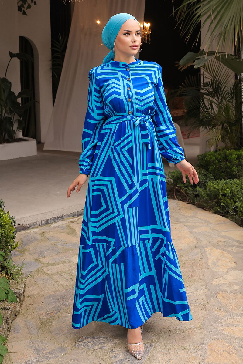 Half-Button Viscose Dress is a modest wear product that can be used in all four seasons. Made from viscose fabric, the dress has a bicycle collar and front half-buttoned design. The dress does not have a lining, and the product on the model is size 38. Height: 160 cm, Chest: 86 cm, Waist: 68 cm, Hips: 95 cm, Weight: 55 kg. The two ends of the belt are sewn to prevent it from flapping, and the middle part is left empty (seamless). The belt is included with the product and can be optionally used. The cuffs are elastic.