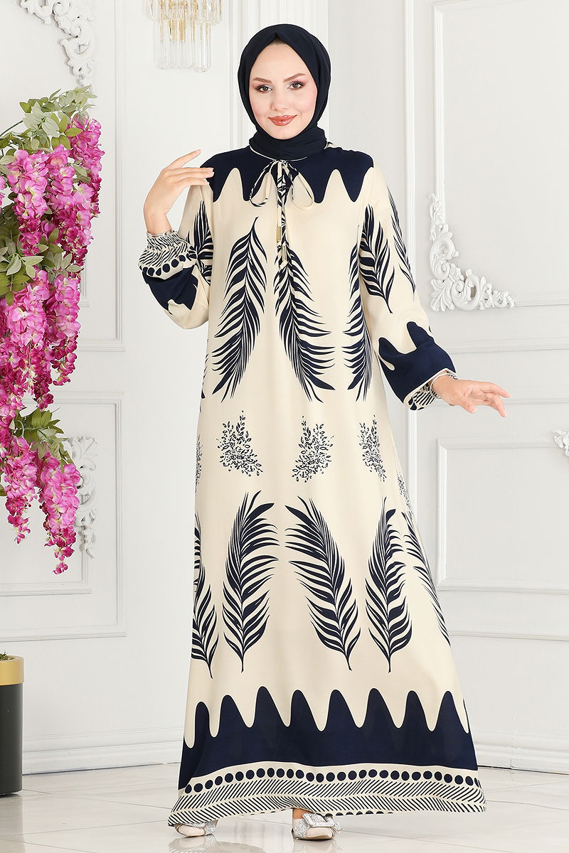 Yakası Bağlamalı Viskon Dress is a dress model for modest wear. It can be used in the Spring and Summer seasons. Hand wash is recommended. It is made from first-class Viscose fabric. The product has a bicycle collar and is unlined. (The product on the model is size 38.) Height: 160 cm, Chest: 86 cm, Waist: 68 cm, Hips: 95 cm, Weight: 52 kg. The product has laces and elastic cuffs.
