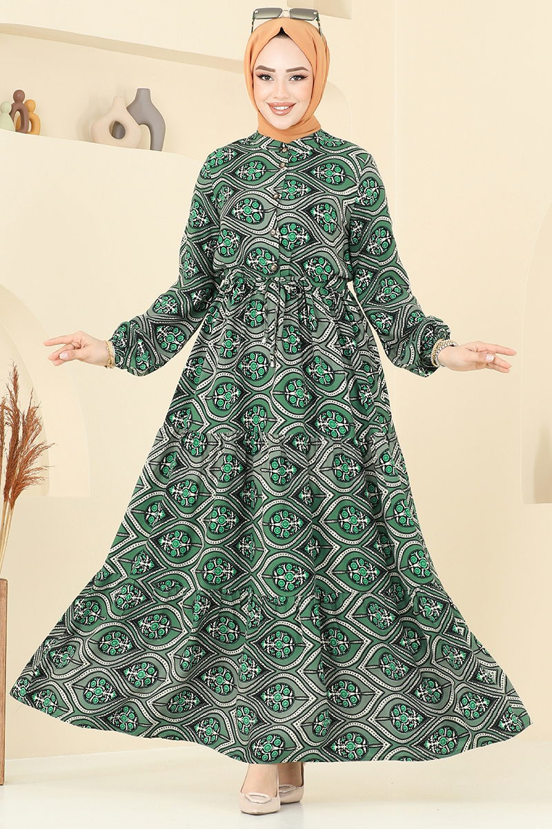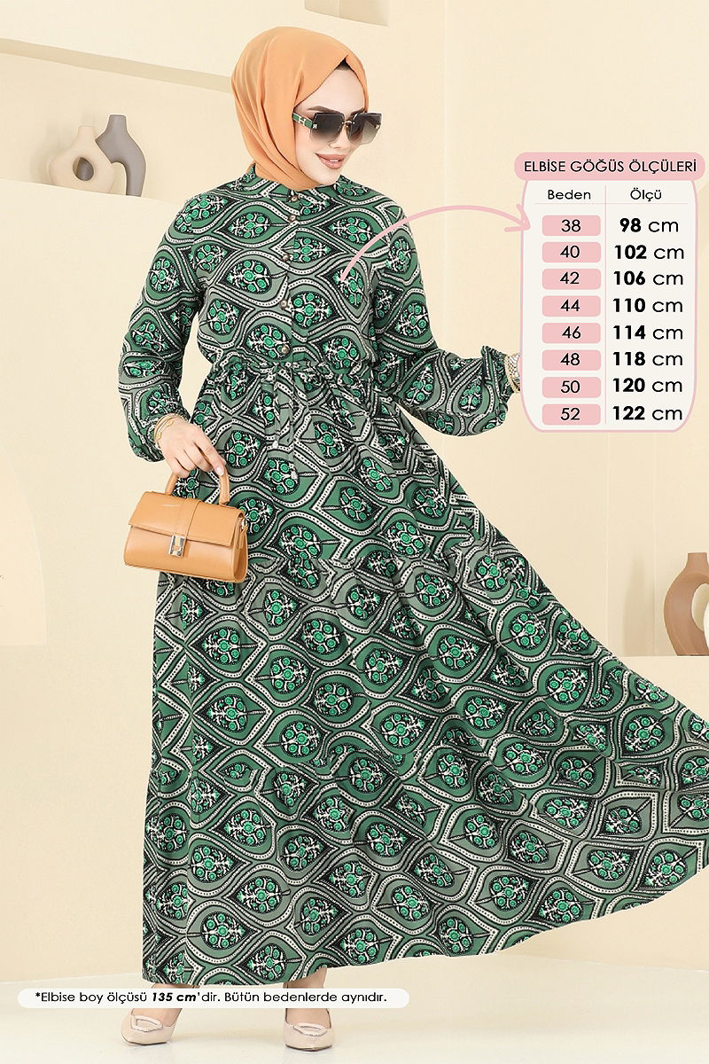 The Belted Islamic Dress offers a stylish and comfortable dressing experience. Ideal for Spring and Summer, this dress is made of viscose fabric and requires hand washing. It features a semi-high collar and half-buttoned front design for practical use. The unlined structure emphasizes lightness, while the belted waist and elasticated cuffs catch the eye. With this dress, you can enjoy both comfort and elegance. The product size is 38.