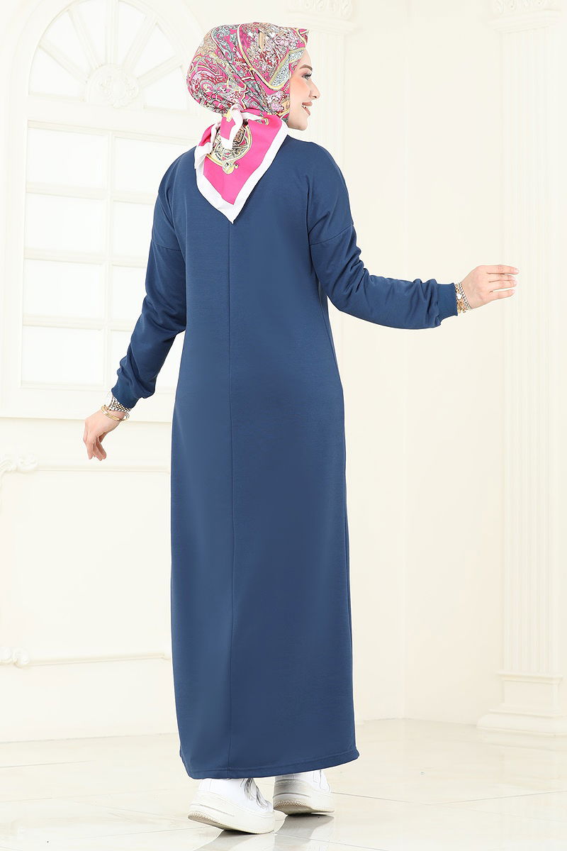 The Half Zip Dress offers a modern and elegant design that can be comfortably worn in all seasons. Made from a special double-thread fabric, it provides comfort while its lining-free feature emphasizes lightness. It is recommended to be washed gently at 30 degrees. This dress is suitable for modest fashion, ensuring your elegance in any setting. The product displayed is in size 38.