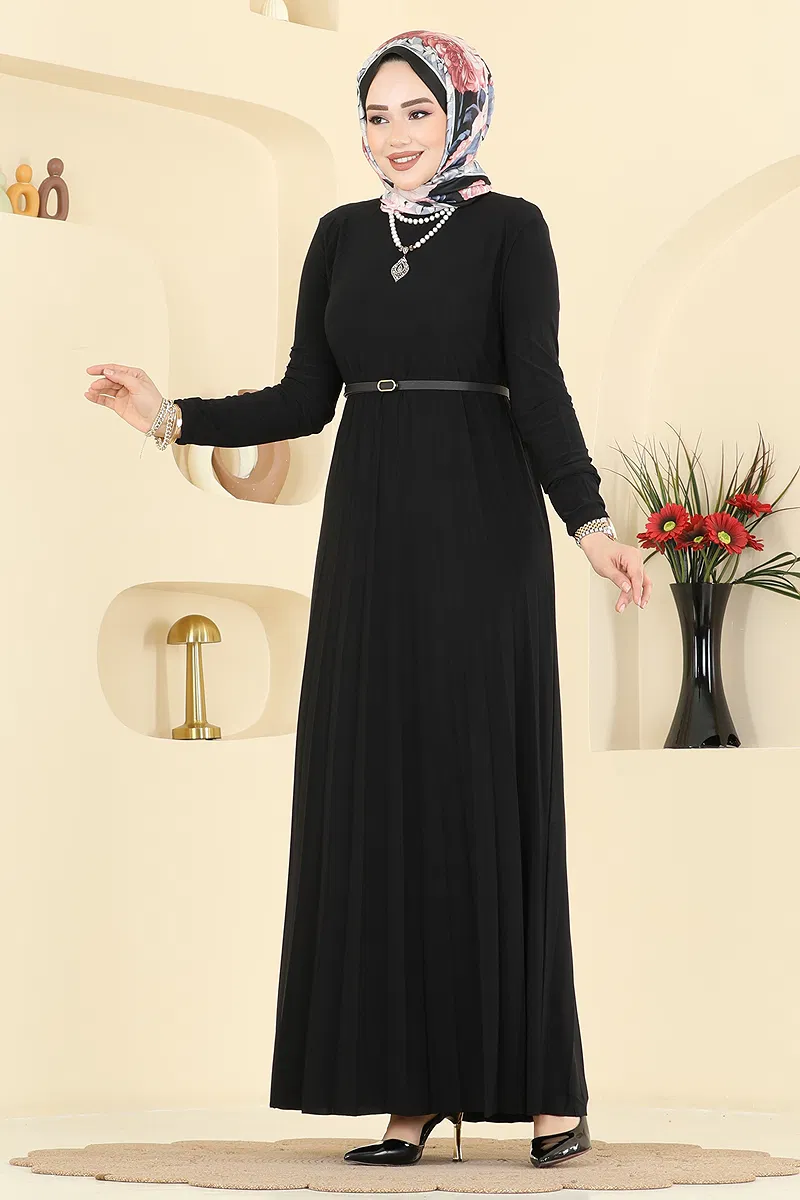 Whether for everyday wear or special occasions, capture elegance with the Flowing Comfort Pleated Dress! Suitable for all seasons, this dress offers a perfect touch to your skin with its sandy fabric. Washable at 30 degrees with gentle care, this product combines comfort and style with its crew neck and elastic cuffs. The size 40 sample on the model ensures a design that fits all sizes!