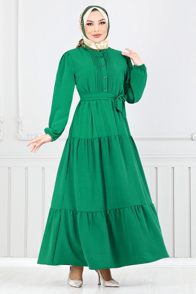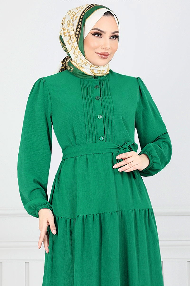 المنتج لديه ياقة بيضوية. المنتج به أزرار نصف أمامي. غير مبطنة. الحزام متضمن، ،يمكن استخدامها حسب الرغبة السوار مطاطي. قد يكون هناك اختلاف في الدرجة اللونية في المنتج بسبب التقاط الصور الفوتوغرافية.
