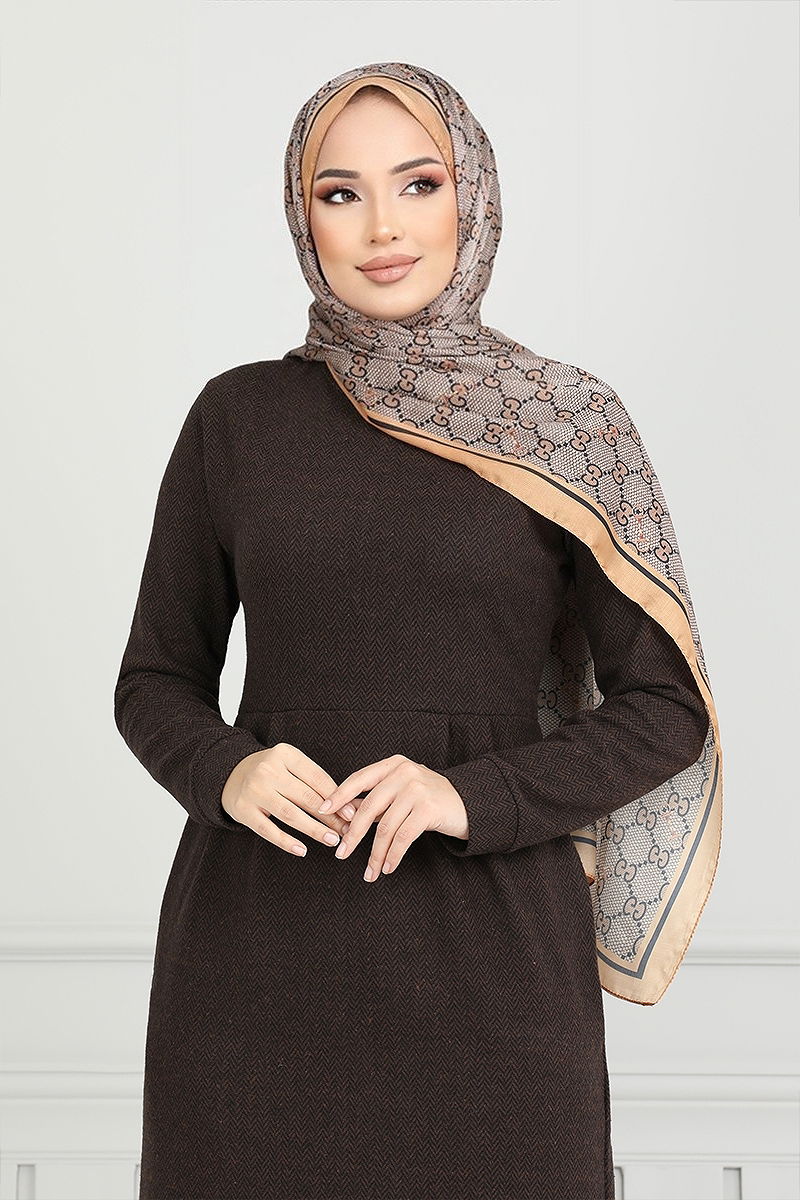 Perfect for maintaining your elegance in the autumn and winter months: Herringbone Detail Pocket Dress! Suitable for hijab style, this dress stands out with its herringbone patterned fabric and adds a modern touch with its bike neck and slit details. The pocket detail provides practical use. The lining-free design offers a light and comfortable use. It can be cleaned with delicate wash at 30 degrees.