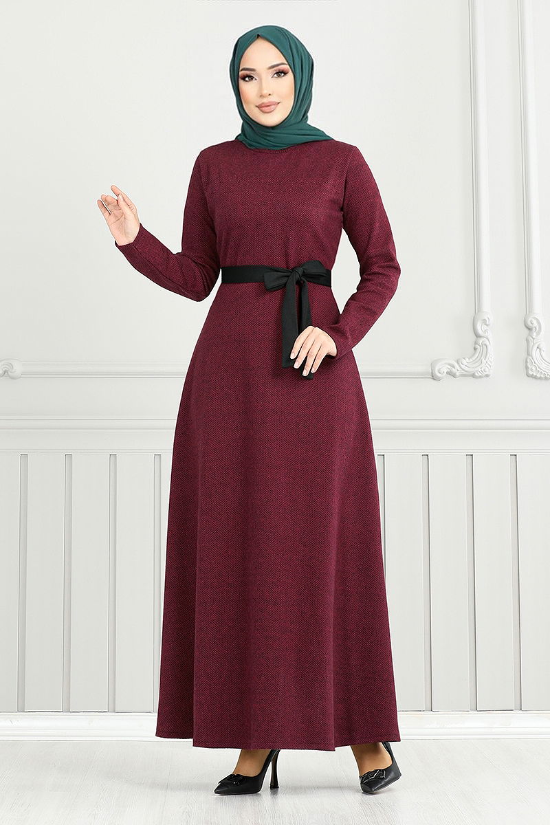 Combining elegance with comfort, the Belted Herringbone Dress brings a sophisticated touch to modest fashion. This dress, ideal for keeping you warm in Autumn and Winter, is made from herringbone fabric suitable for gentle washing at 30 degrees. Featuring a crew neck and unlined design, this model offers a modern look with a belt detail that has sewn ends for practical use. The belt can be optionally removed, allowing you to adjust the elegance to your taste.