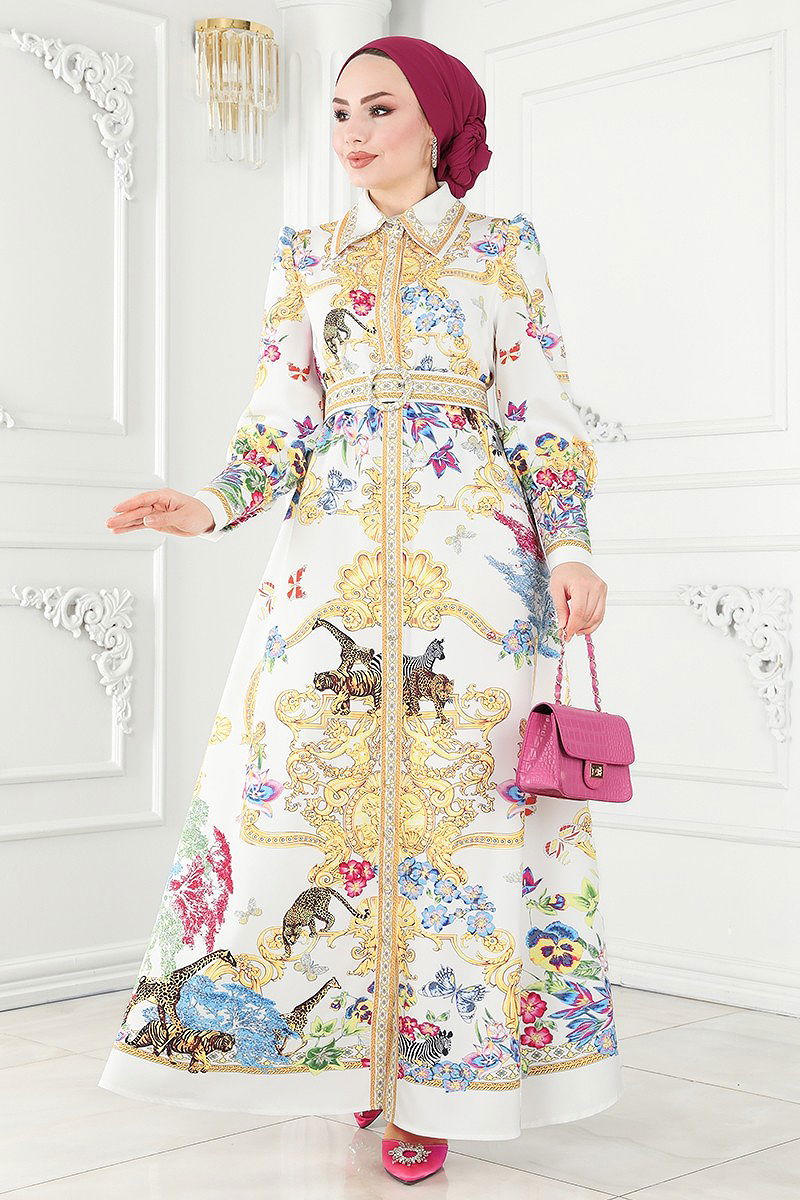 Dress 22445JNF844 Ecru&Gold
