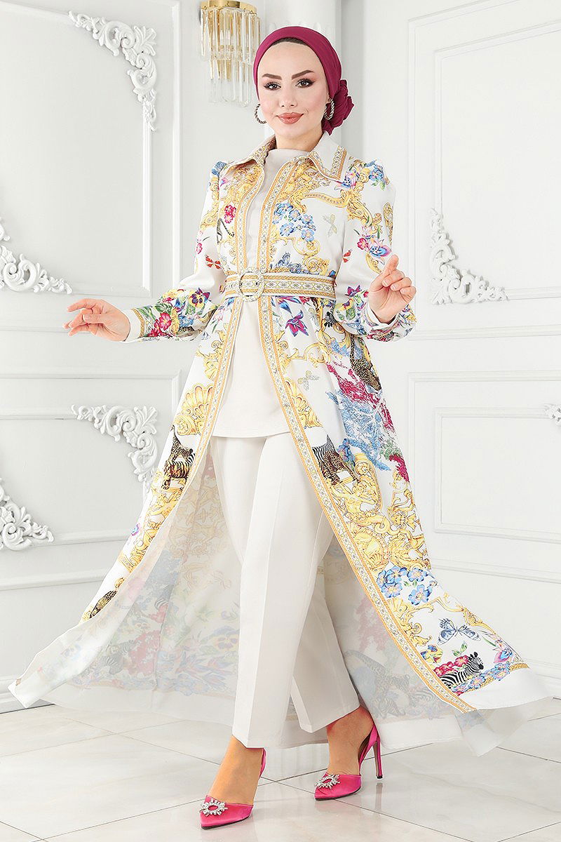 Fabric Property: It is made of Atlas fabric.It is a fabric that can be used in all seasons.Product Feature :It is a new season hijab style product. (Unlined.)It has a functional buttons.Belt is included, can be used optionally.There may be a tonal difference in the product color due to the concept shots.