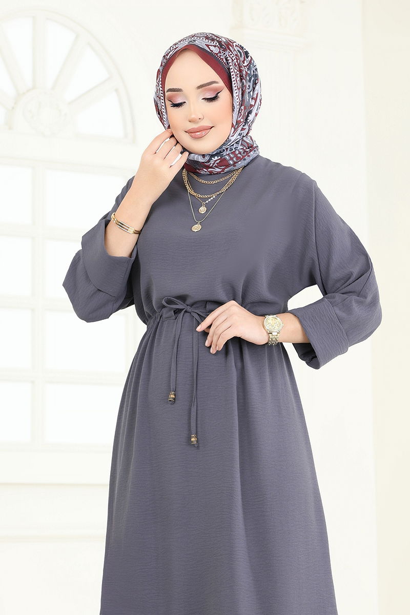 يوجد زر يمكن استخدامه من الخلف. المنتج لديه ياقة دائرية. غير مبطنة. الملحقات غير متضمنة. يتميز بخصر بأربطة على الخصر. قد يكون هناك اختلاف في الدرجة اللونية في المنتج بسبب التقاط الصور الفوتوغرافية.