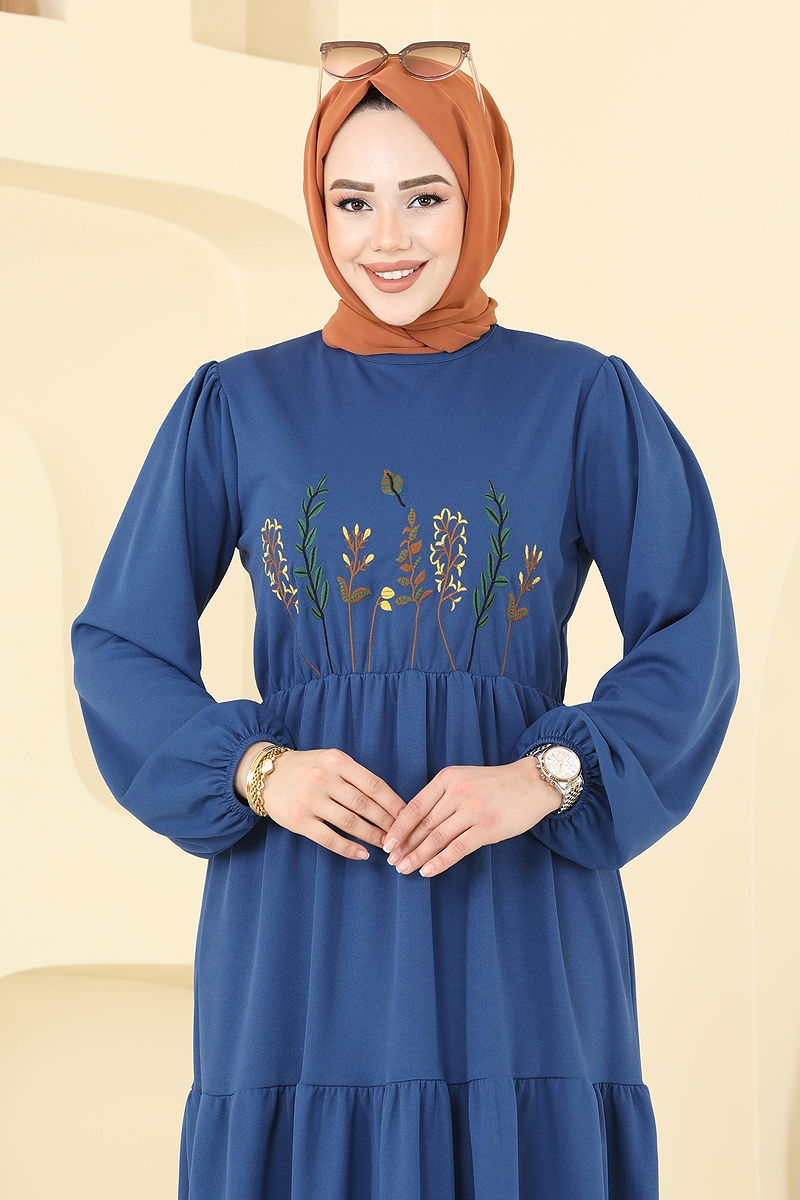 Embroidered Hijab Dress is a special design that can be comfortably used in all seasons. This elegant dress, which can be washed in a gentle cycle at 30 degrees, is made from crepe fabric. With a crew neck cut and unlined structure, it offers comfort while easy to wear over the head. The belt and cuffs of the dress are elastic, with embroidered details providing an eye-catching appearance. The product is presented in size 38, and other size options are also available.