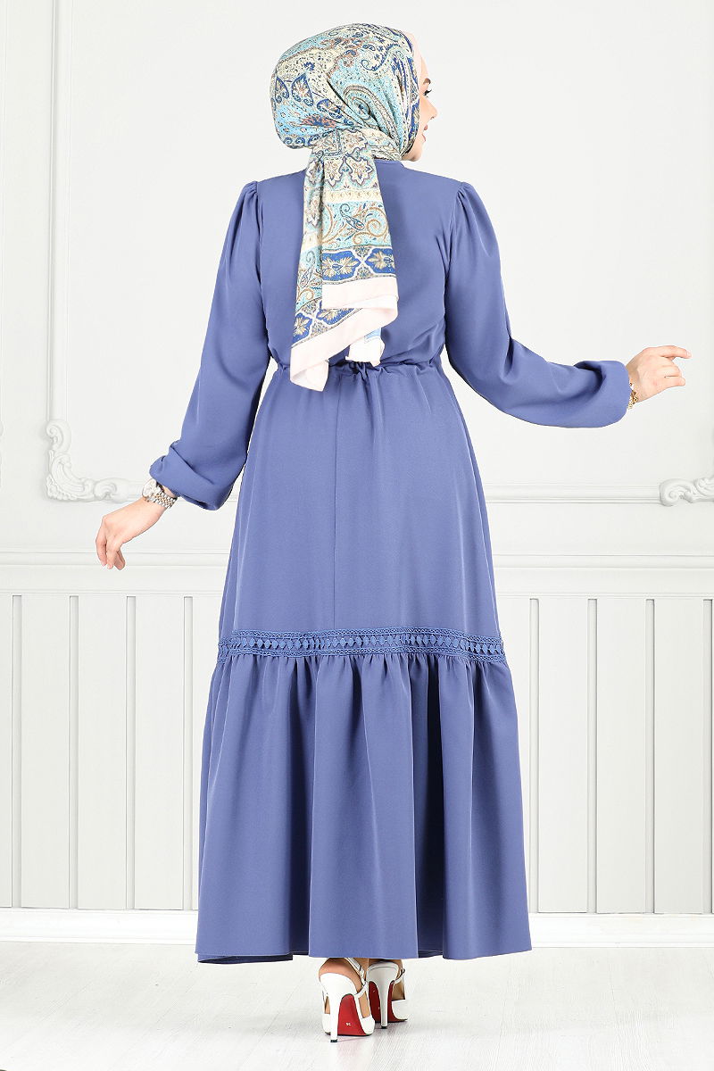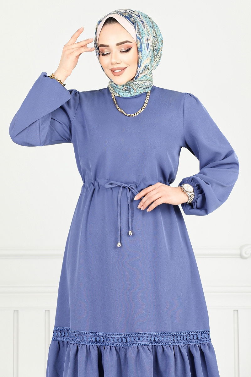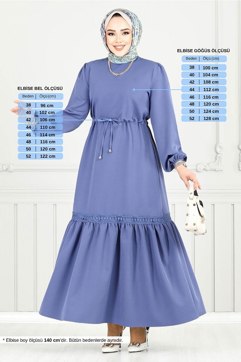يتميز بخصر ذو أربطة. المنتج لديه ياقة دائرية. غير مبطنة. المنتج به سحاب في جزء من الخلف. التفاصيل المخرمة مخيطة. السوار مطاطي. قد يكون هناك اختلاف في الدرجة اللونية في المنتج بسبب التقاط الصور الفوتوغرافية.