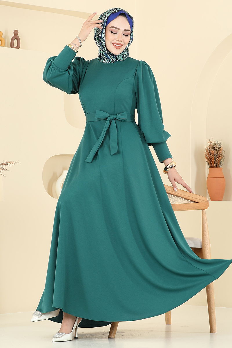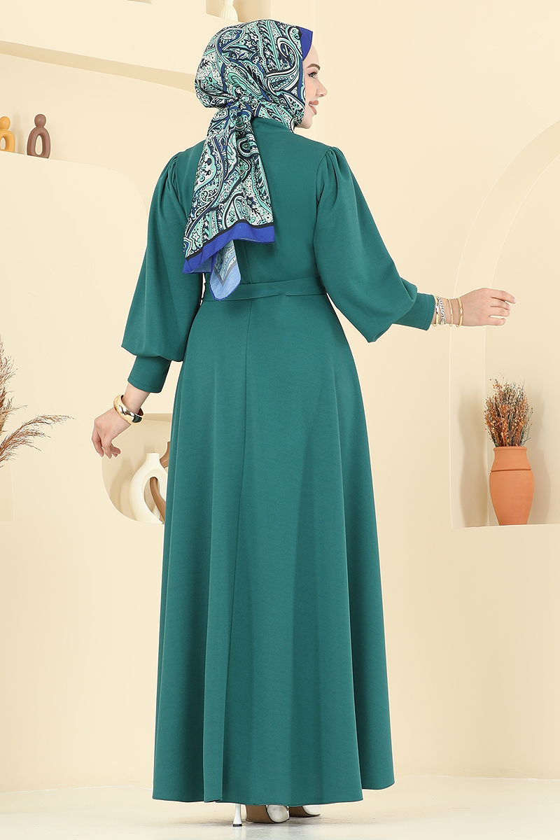 المنتج لديه ياقة بيضوية. غير مبطنة. المنتج به سحاب في جزء من الخلف. المنتج يحتوي على حزام خصر مُخاط. الحزام متضمن، ،يمكن استخدامها حسب الرغبة قد يكون هناك اختلاف في الدرجة اللونية في المنتج بسبب التقاط الصور الفوتوغرافية.