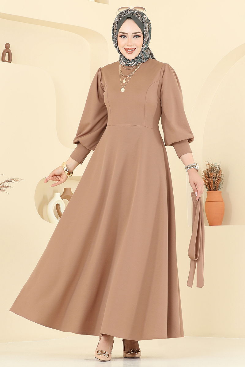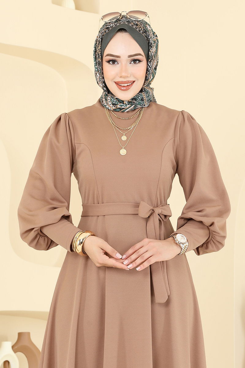 المنتج لديه ياقة بيضوية. غير مبطنة. المنتج به سحاب في جزء من الخلف. المنتج يحتوي على حزام خصر مُخاط. الحزام متضمن، ،يمكن استخدامها حسب الرغبة قد يكون هناك اختلاف في الدرجة اللونية في المنتج بسبب التقاط الصور الفوتوغرافية.