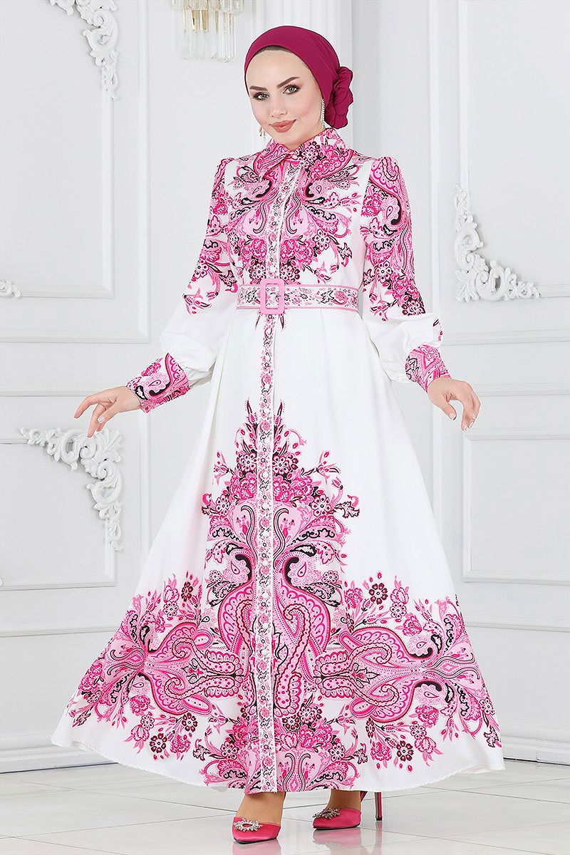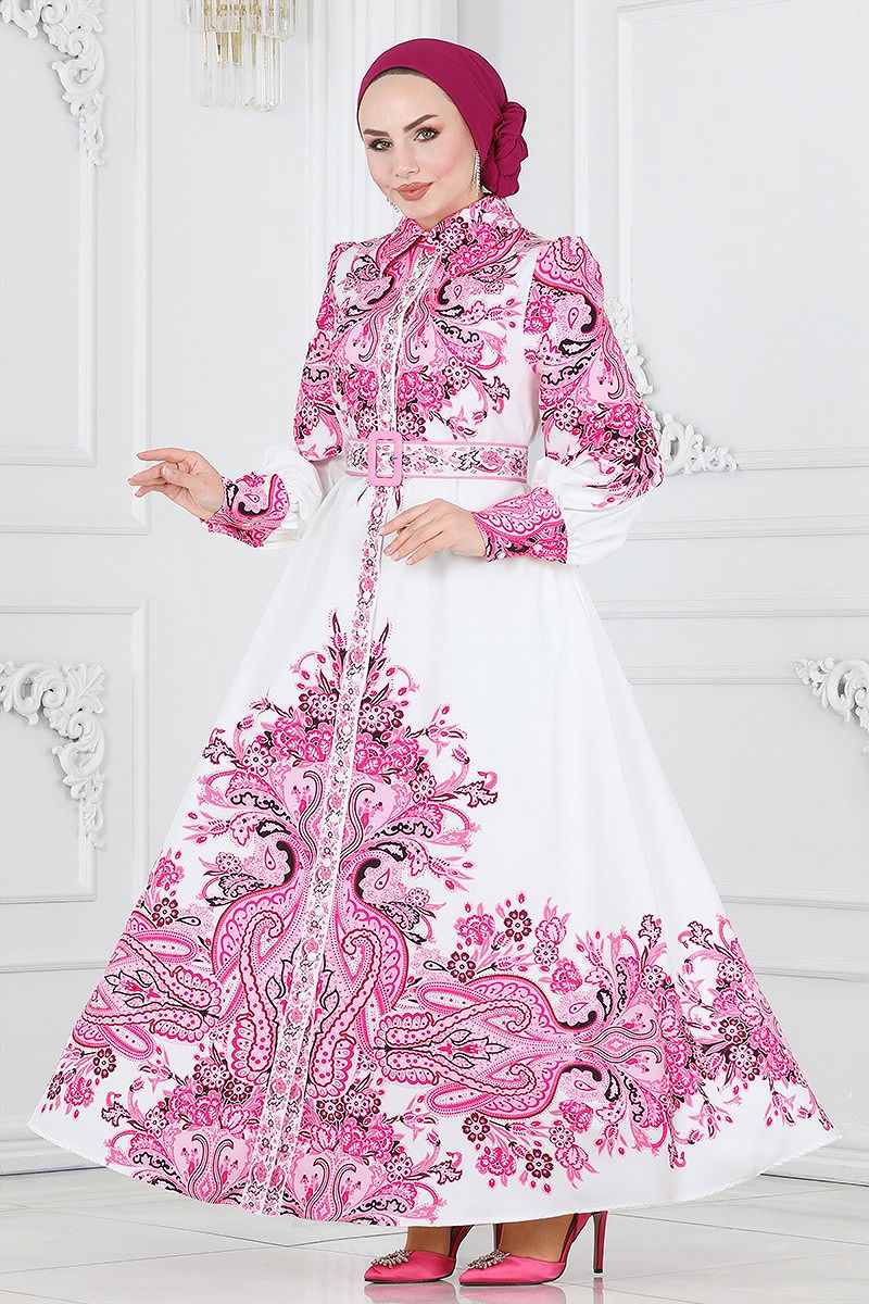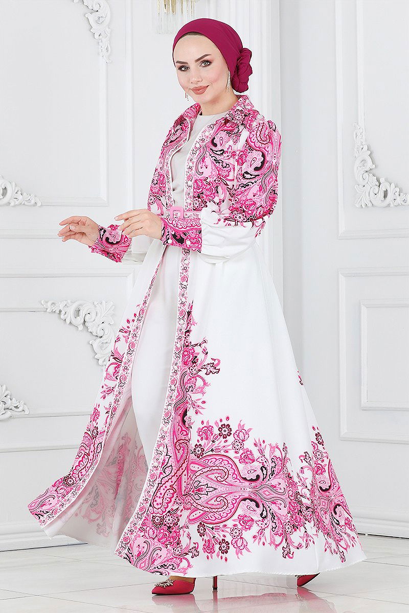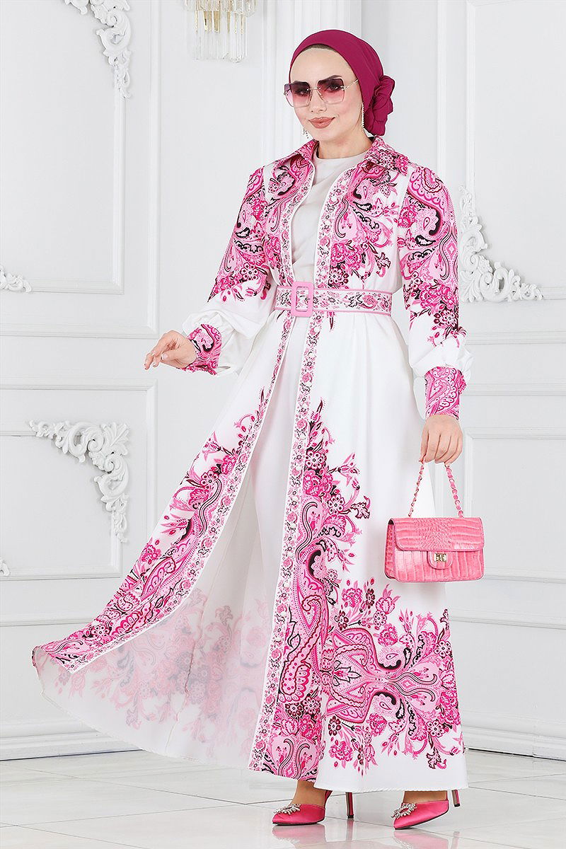 Fabric Property: It is made of Digital Printed Double Crepe fabric.It is a fabric that can be used in all seasons.Product Feature :It is a new season hijab style product. (Unlined.)Half stand-up collarThe product is worn on the head.Belt is included, can be used optionally.Active cuff buttonsThere may be a tonal difference in the product color due to the concept shots.