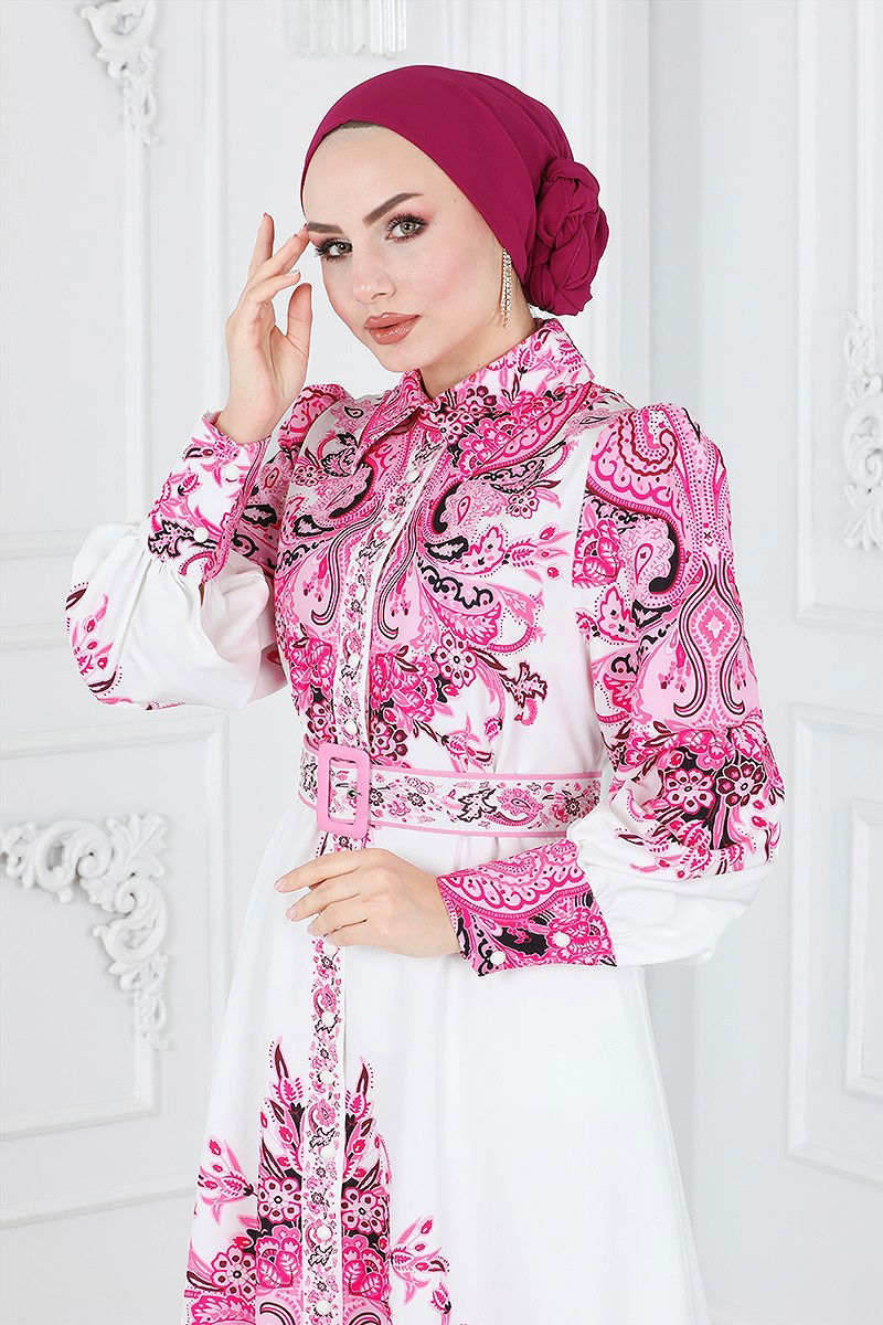 خصوصية القماش: مصنوع من قماش كريب الدبل المطبوع رقمياقماش يستخدم في المواسم الاربعةميزة المنتج :منتجات الموسم الجديد موضة المحجبات. (غير مبطن.)ياقة نصفية مدورة.المنتج يلبس من الرأسالمنتج يتضمن الحزام، .يمكن عدم الاستخدام حسب الرغبة.المعصم ذو ازرار نشطة.قد تختلف درجة لون المنتج بشكل قليل على الواقع عن الصورة الموجودة بسبب إضاءة التصوير