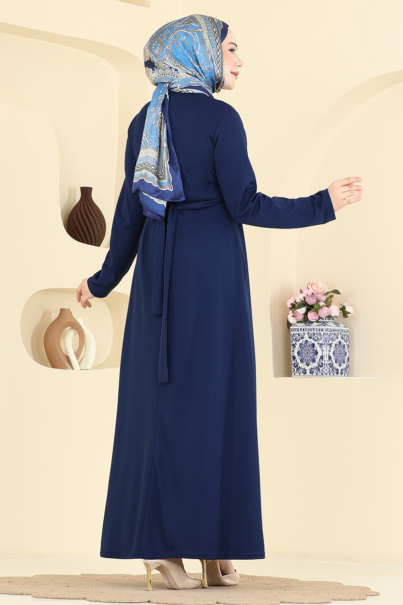 Featuring a chic and modern design, the Belted Crepe Dress is a perfect blend of elegance and comfort in modest wear. Designed to be worn in all seasons, this dress offers day-long comfort with its special knitted crepe fabric. It can be washed at 30 degrees with a gentle cycle, ensuring durability and ease of care. The crew neck and unlined design provide a contemporary look, while the tie-able belt at the side adjusts to fit various body types. The belt is sewn as a distinctive detail of the dress. Ideal for fashion-conscious women, this dress is a must-have for those seeking sophisticated elegance.