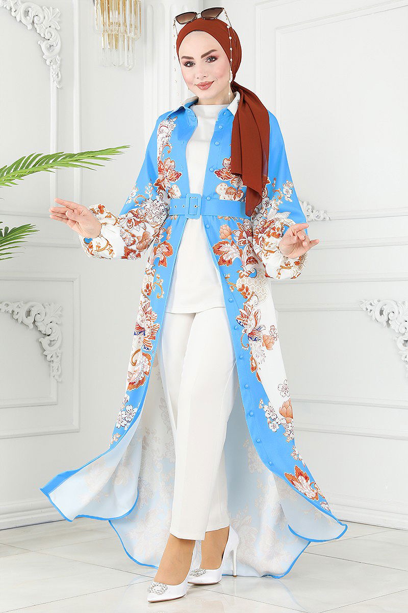 Product Feature :It is a new season hijab style product. (Unlined.)It has a functional buttons.Belt is included, can be used optionally.There may be a tonal difference in the product color due to the concept shots.