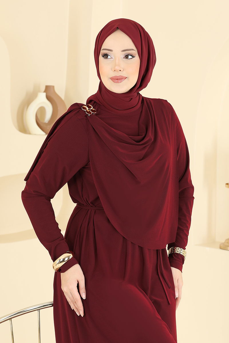 The Buckle Detailed Sandy Dress is a stylish modest wear suitable for all seasons. This dress, which can be washed at 30 degrees due to its delicate nature, is made from durable Sandy fabric. Featuring a crew neck design, this unlined dress impresses with its buckle and shawl details. A lace is also included with the product, which can be used optionally. The product displayed is in size 38.