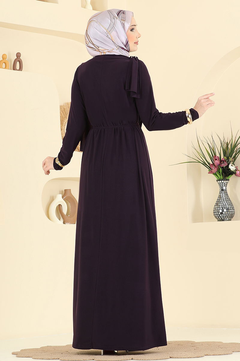 The Buckle Detailed Sandy Dress is a stylish modest wear suitable for all seasons. This dress, which can be washed at 30 degrees due to its delicate nature, is made from durable Sandy fabric. Featuring a crew neck design, this unlined dress impresses with its buckle and shawl details. A lace is also included with the product, which can be used optionally. The product displayed is in size 38.