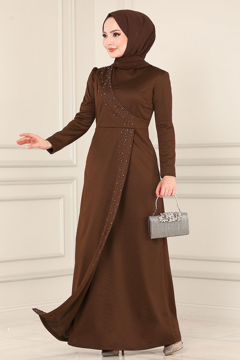 Our Pearl Detail Dress offers elegance and comfort together, making it a perfect choice for all seasons. Crafted from crepe fabric, this modest dress features a crew neck design that lends a contemporary look, while the zipper at the back ensures easy wear. The pearled details, which are affixed with studs, add an extra touch of elegance. The dress is unlined, providing freedom of movement.
