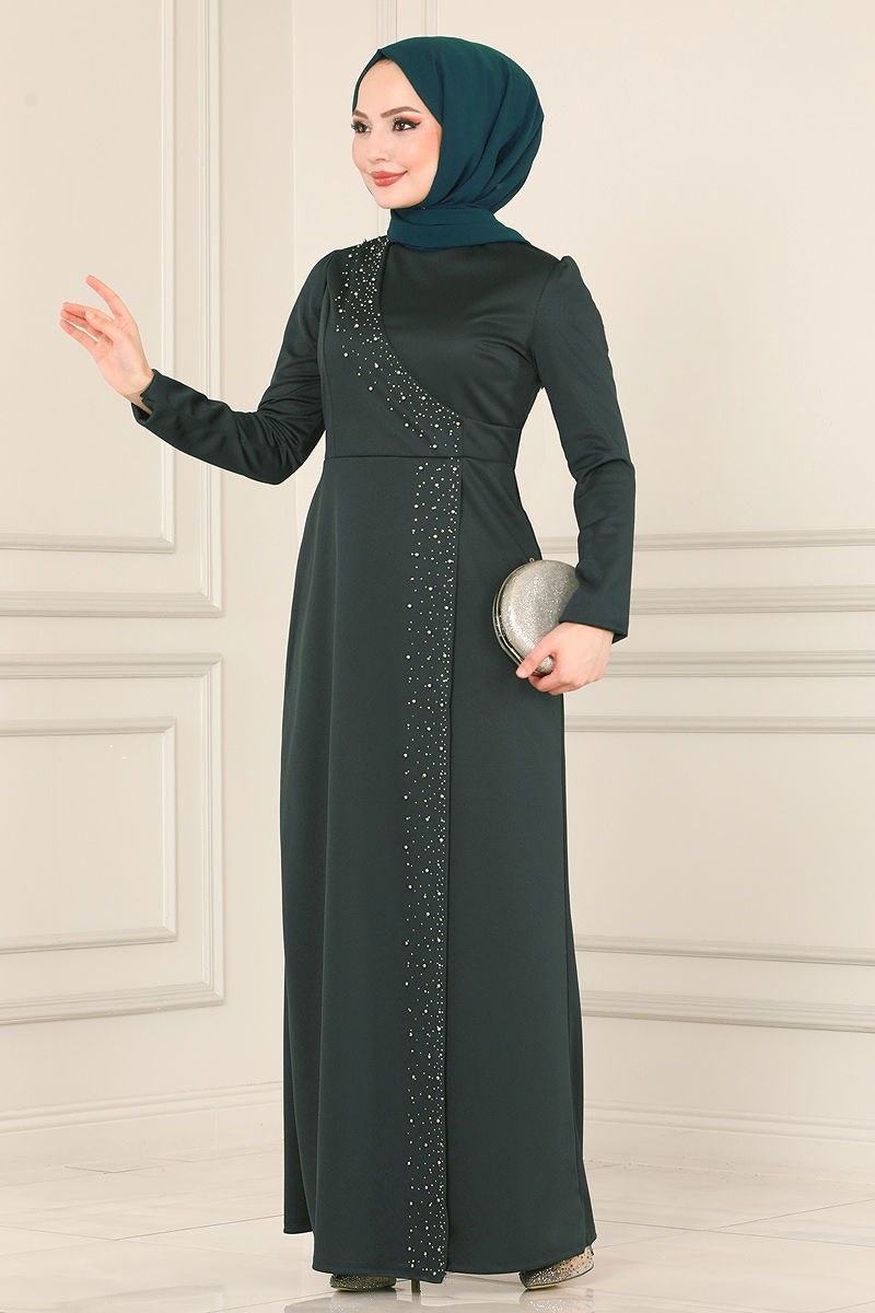 Our Pearl Detail Dress offers elegance and comfort together, making it a perfect choice for all seasons. Crafted from crepe fabric, this modest dress features a crew neck design that lends a contemporary look, while the zipper at the back ensures easy wear. The pearled details, which are affixed with studs, add an extra touch of elegance. The dress is unlined, providing freedom of movement.